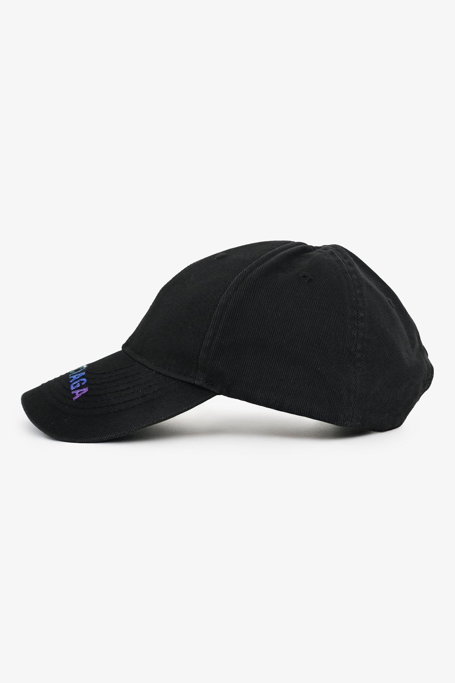 Refresh availabilityBalenciaga Black/Rainbow Logo Baseball Cap. Adjustable velcro back strap. Tonal stitching.