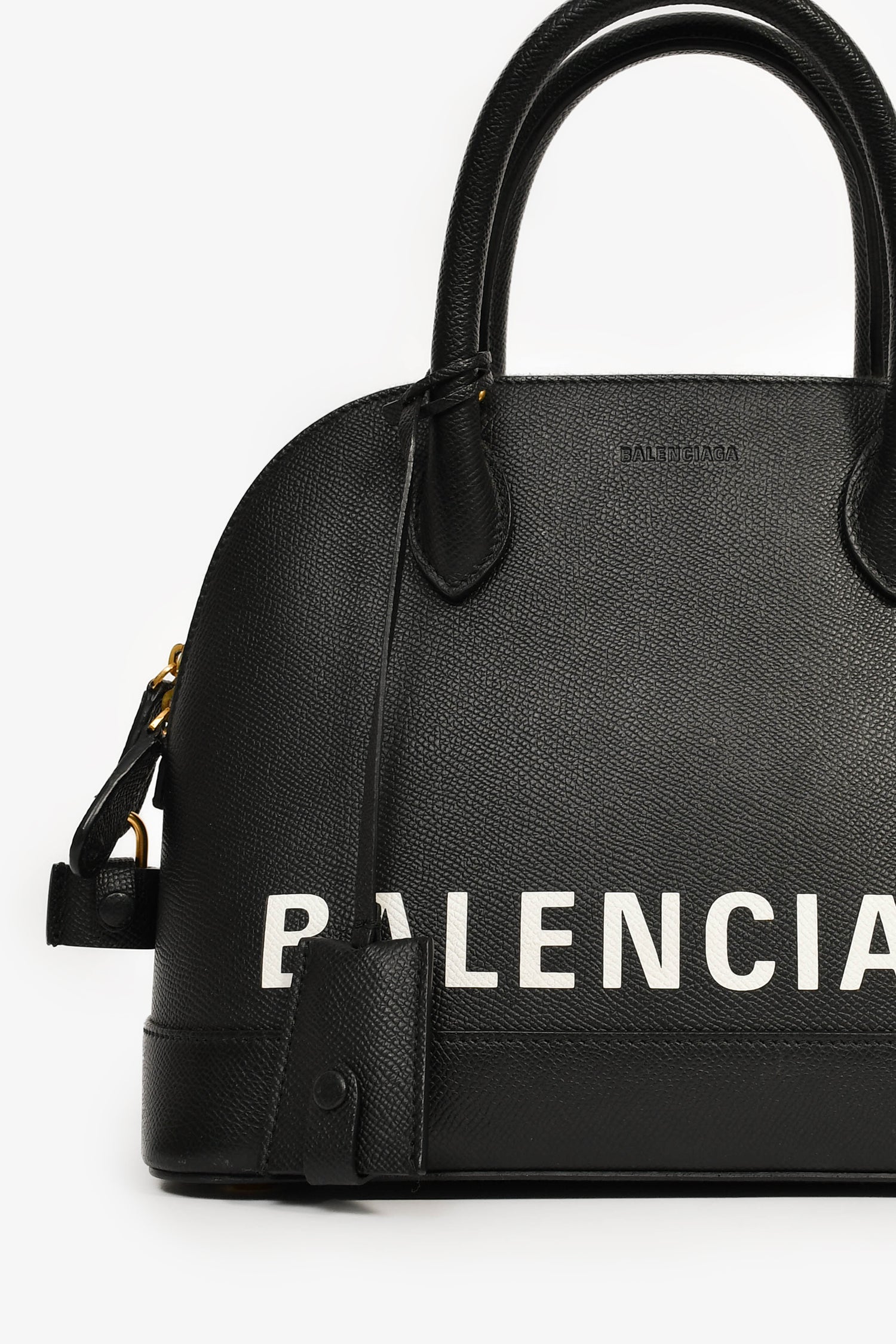 Balenciaga Black/White Leather Logo Ville Leather Top Handle Bag with Strap