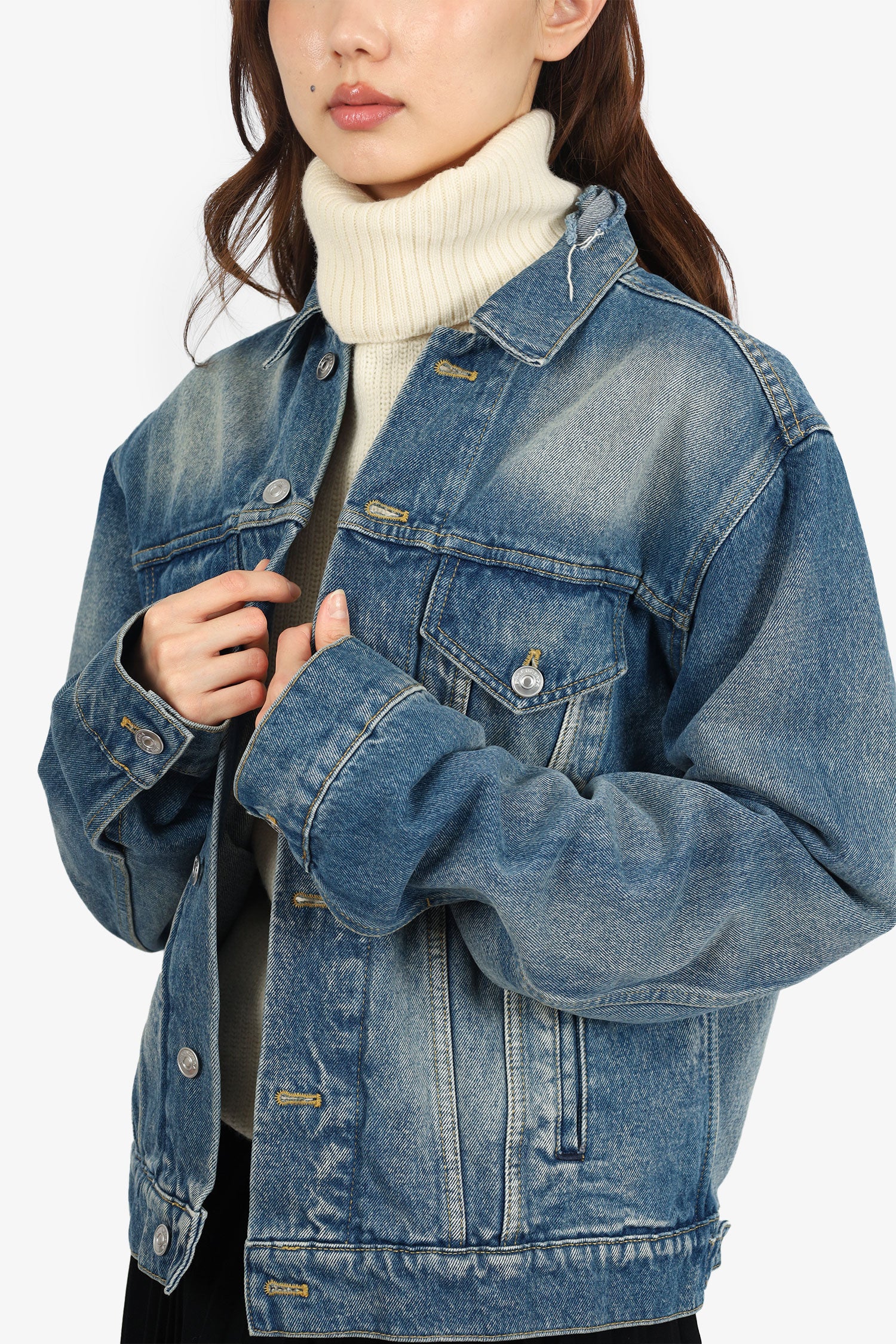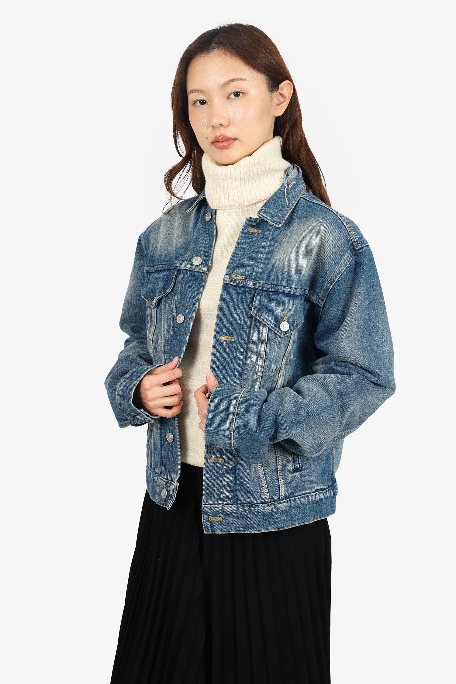 Refresh availabilityBalenciaga Blue 2017 Campaign Logo Denim Distressed Jacket. Front button closure. 4 pockets; 2 with button closure, 2 slip pocket. Silver-tone hardware. Contrast stitching.