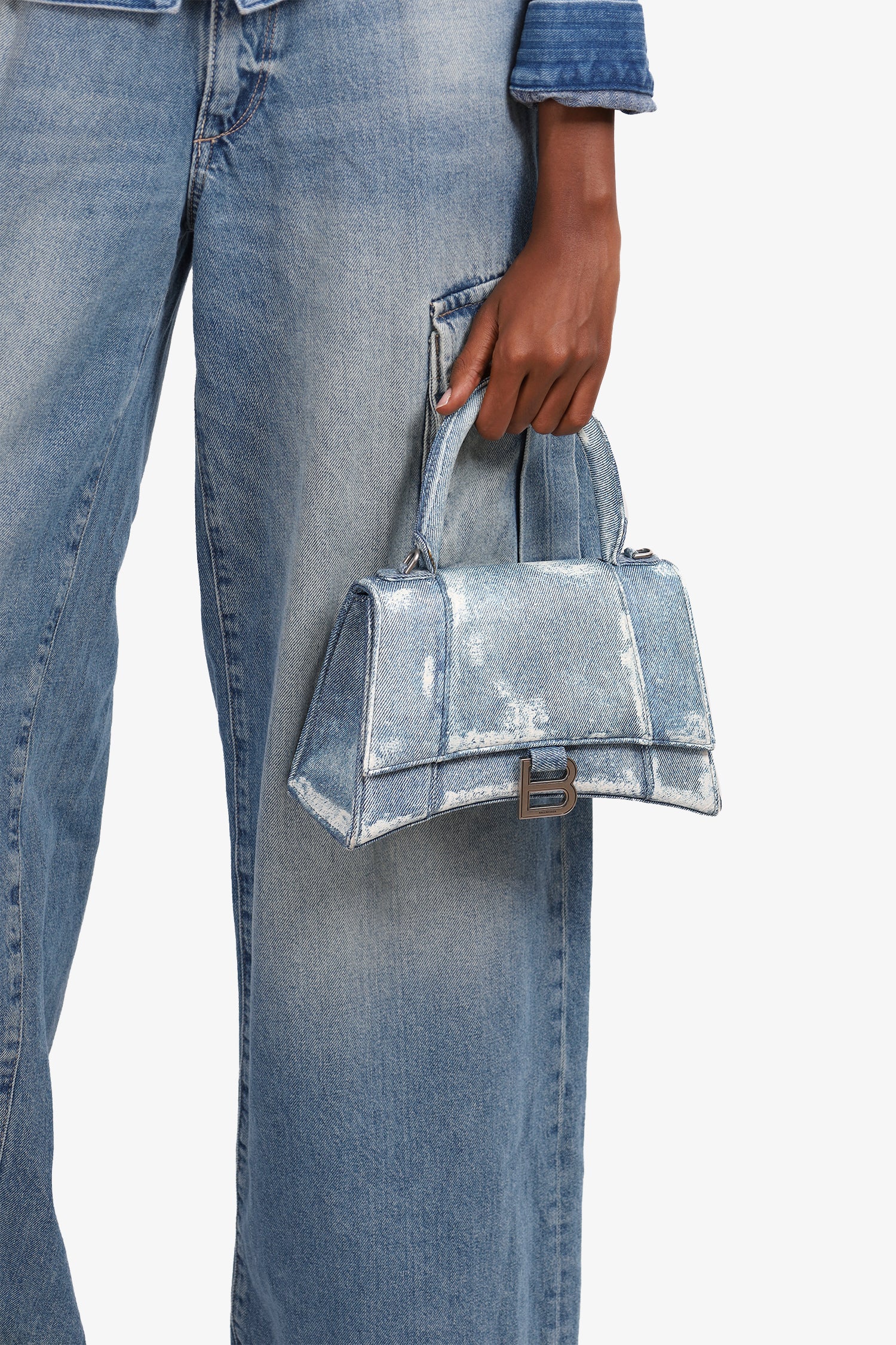 Balenciaga Blue Denim Painted Small Hourglass Top Handle with Strap