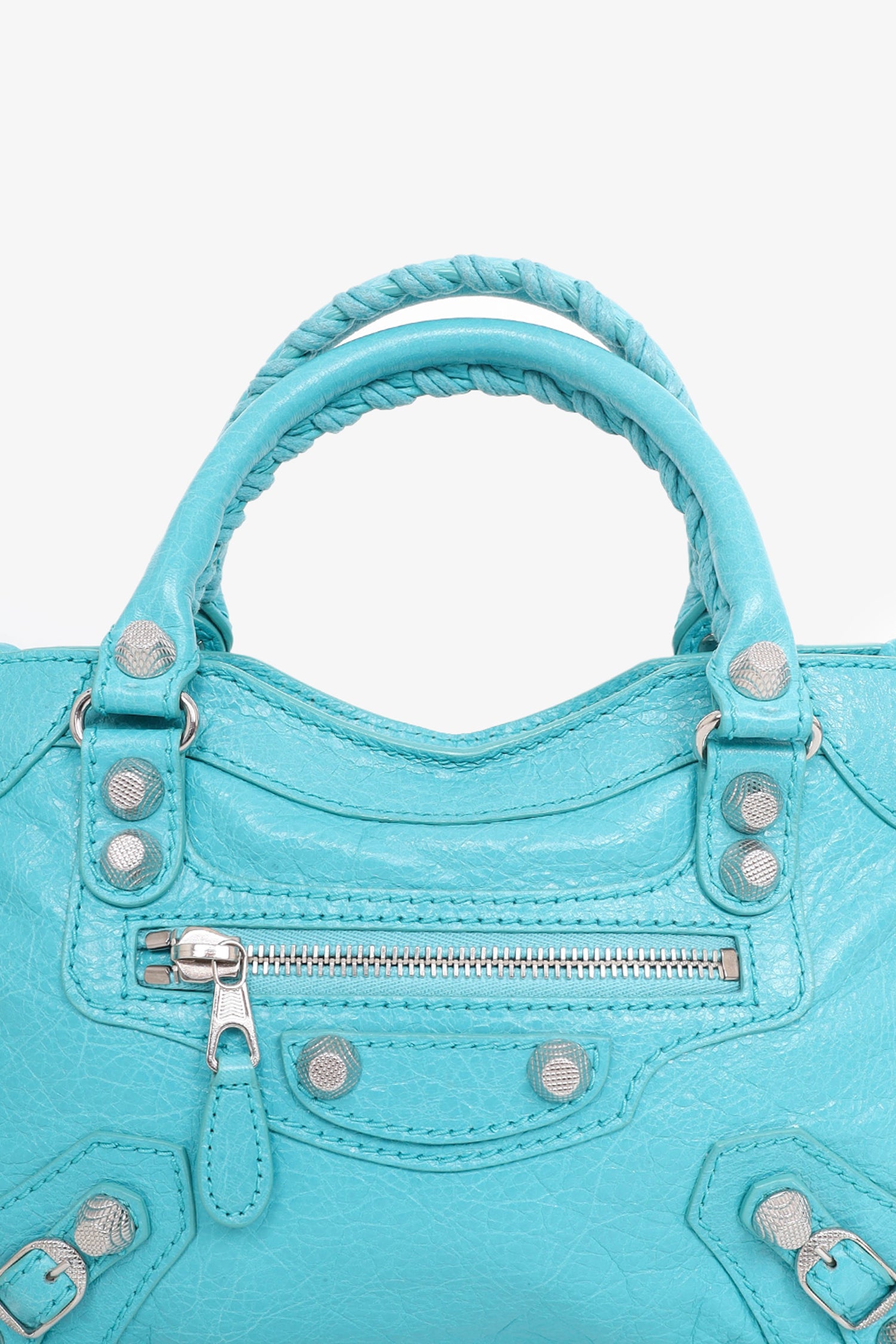 Balenciaga Blue Leather Classic Mini City Bag with Strap