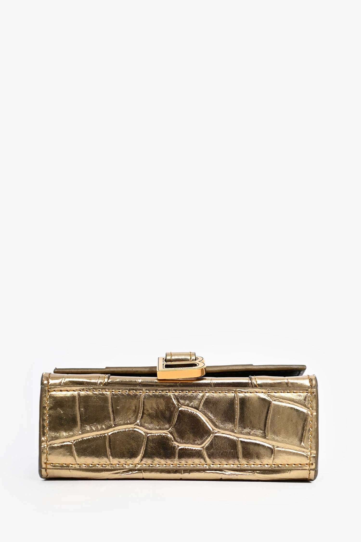 Balenciaga Gold Croc Embossed Leather Hourglass Nano Chain Bag