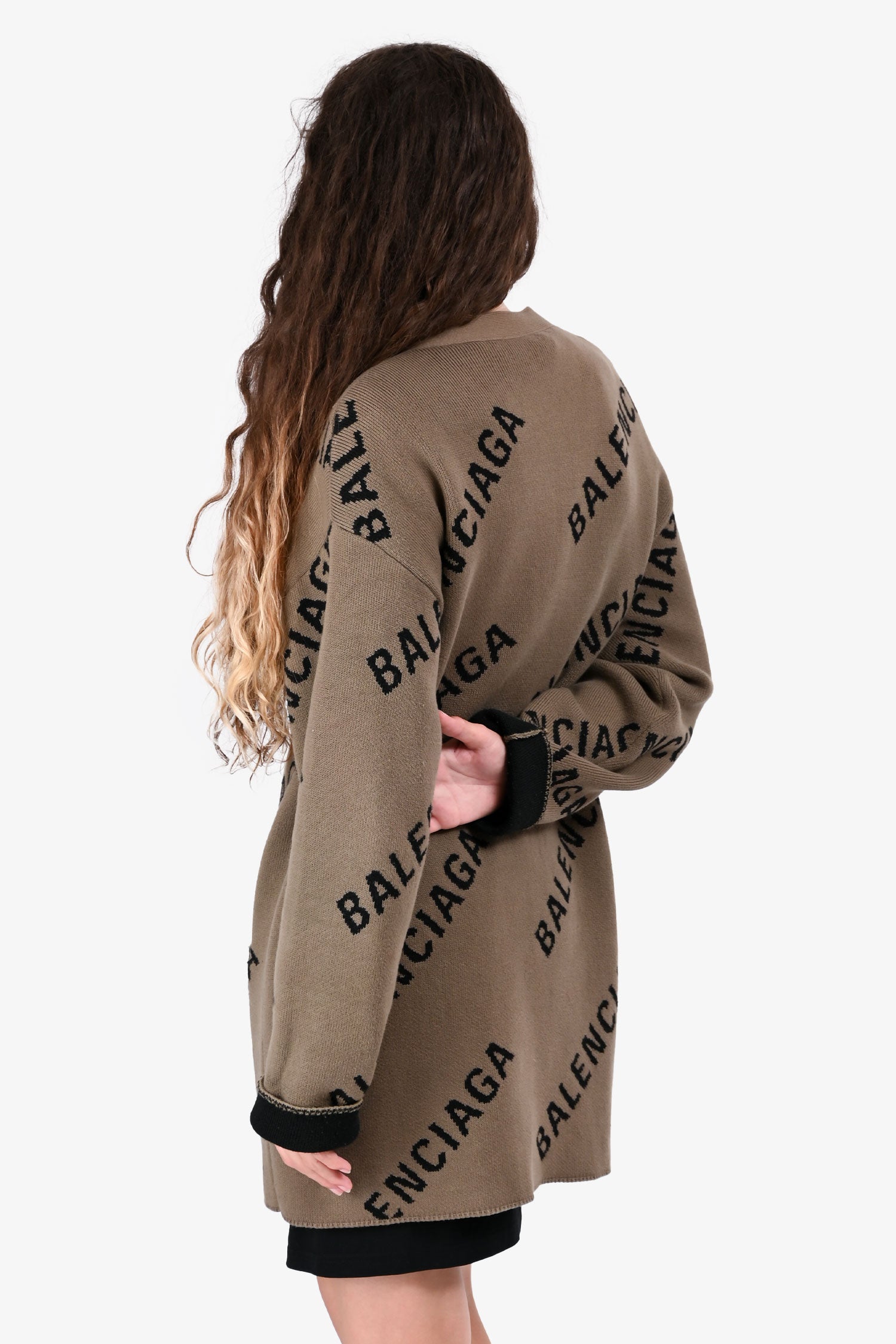 Balenciaga Green Cotton/Wool Logo All Over Cardigan Size XS