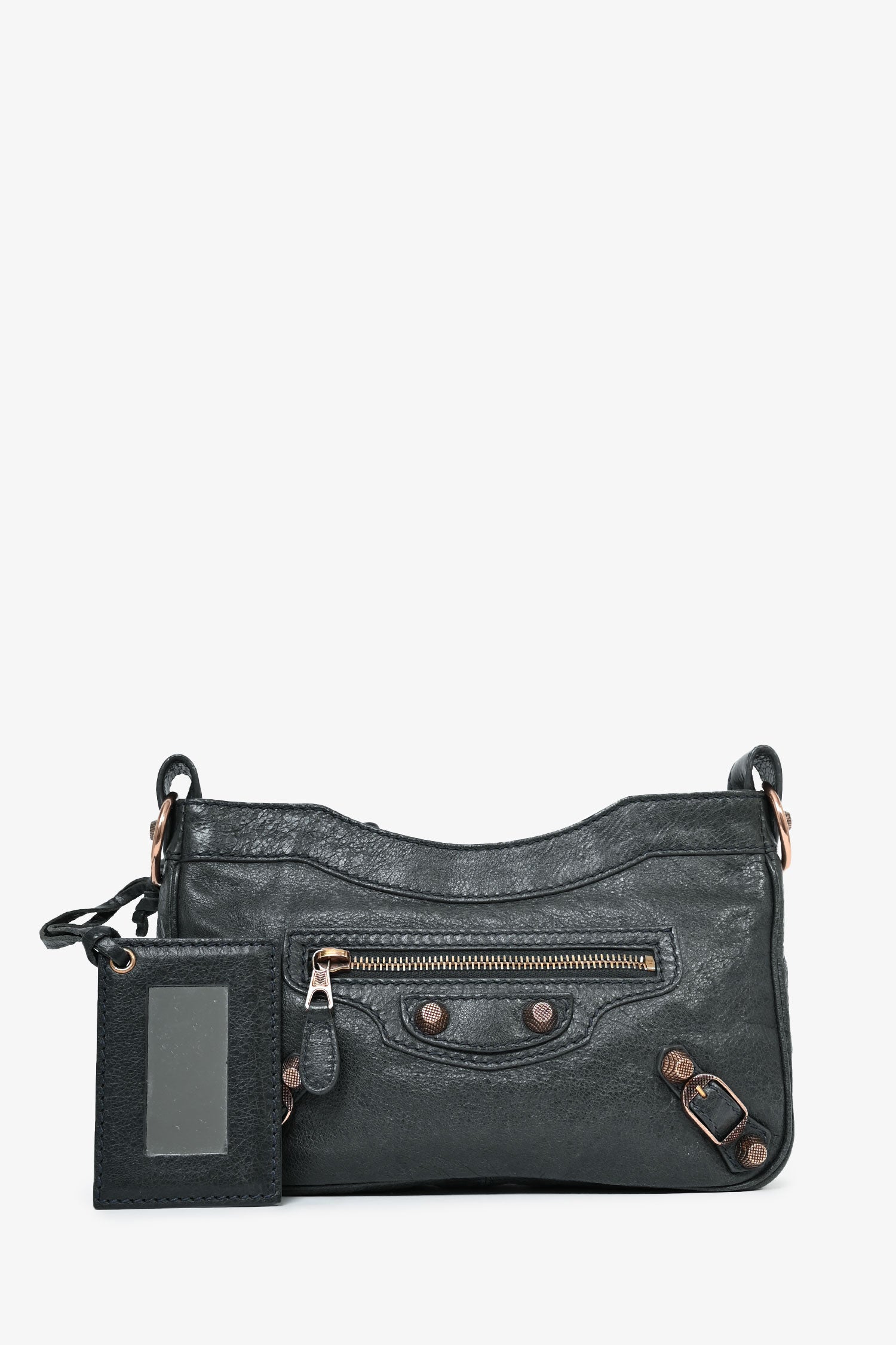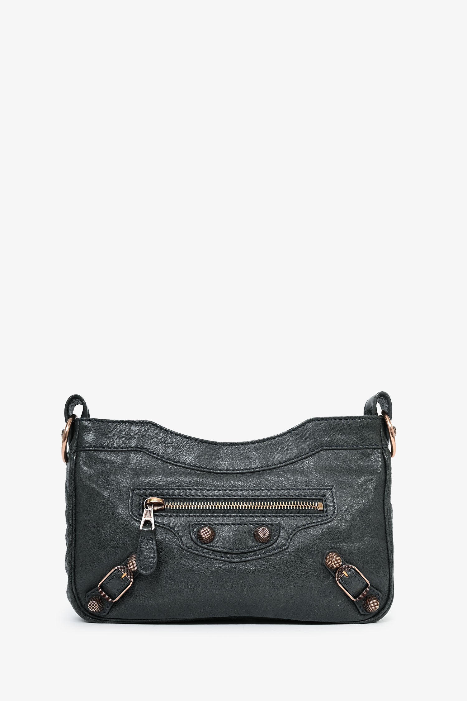 Balenciaga Grey Crinkle Leather Motocross Pouch Crossbody RGHW