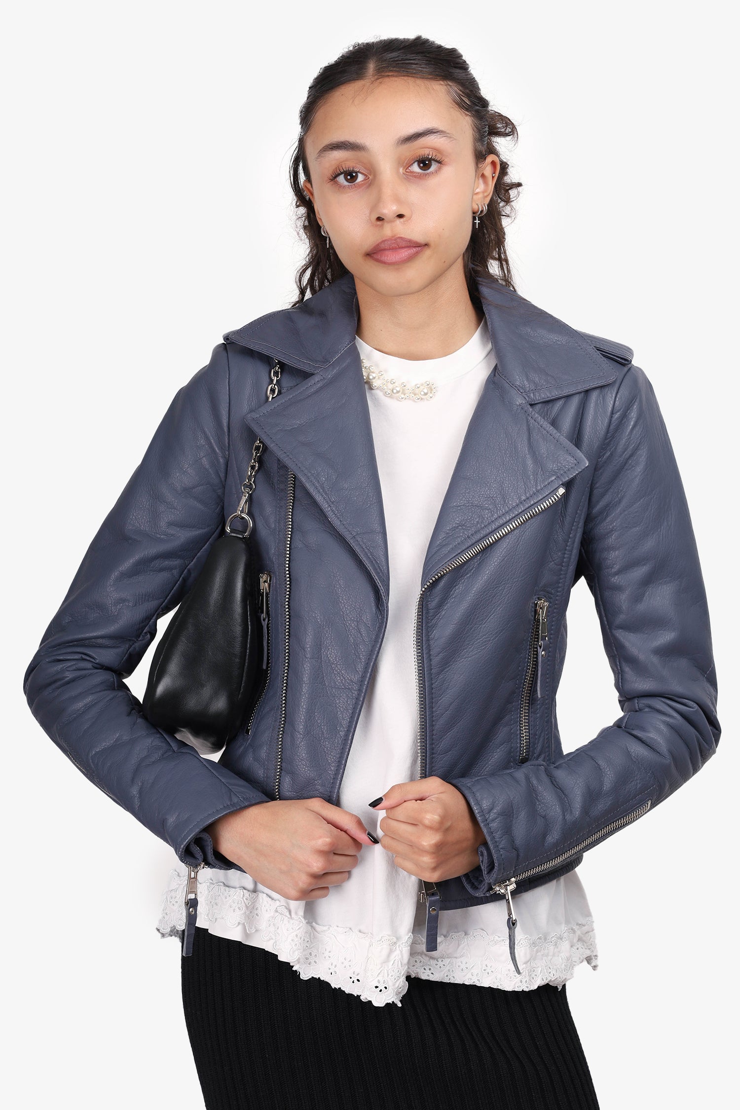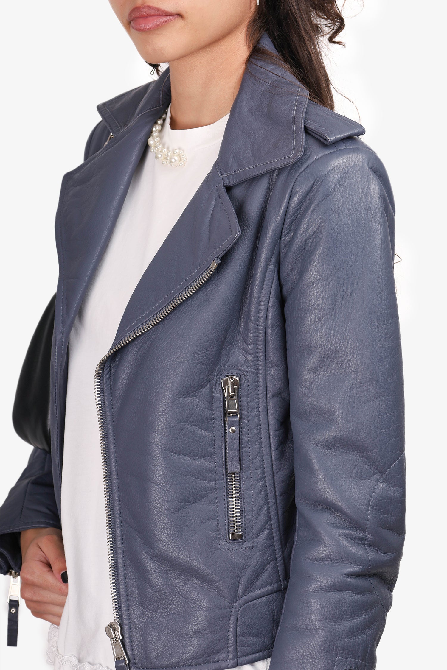Refresh availabilityBalenciaga Grey Leather Biker Jacket. Front zip closure. Front pockets with zip closure. Lined. Silver-tone hardware. Tonal stitching.