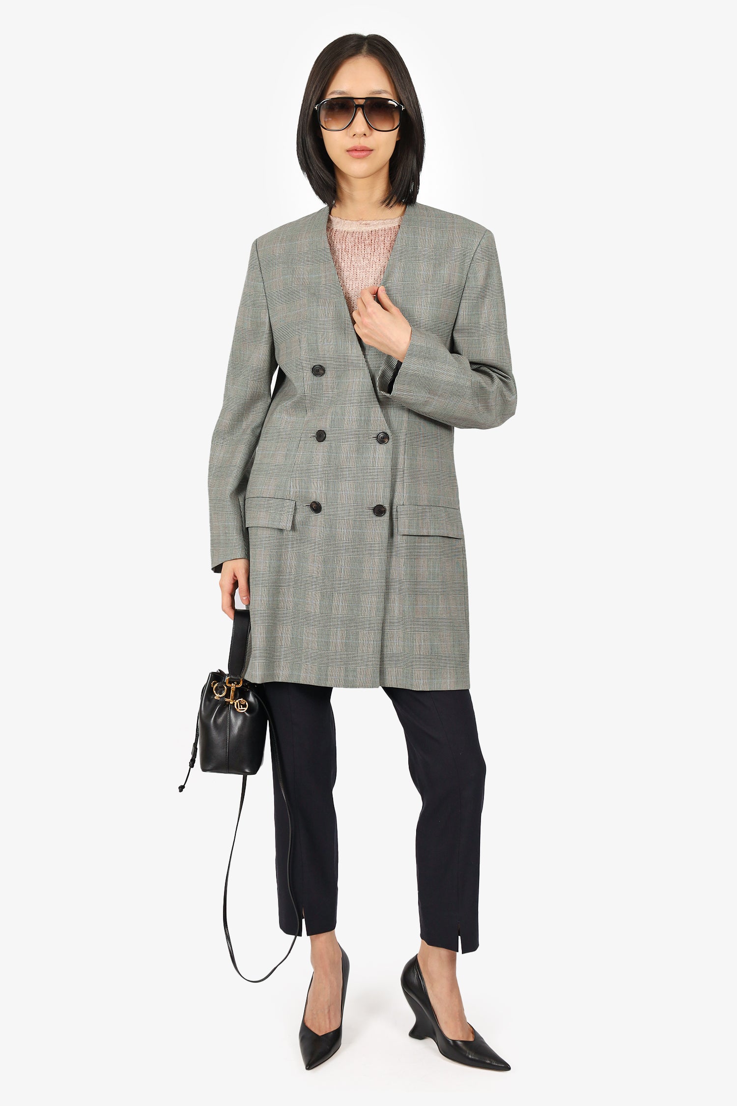 Balenciaga Grey Wool Plaid Blazer Jacket Size 38