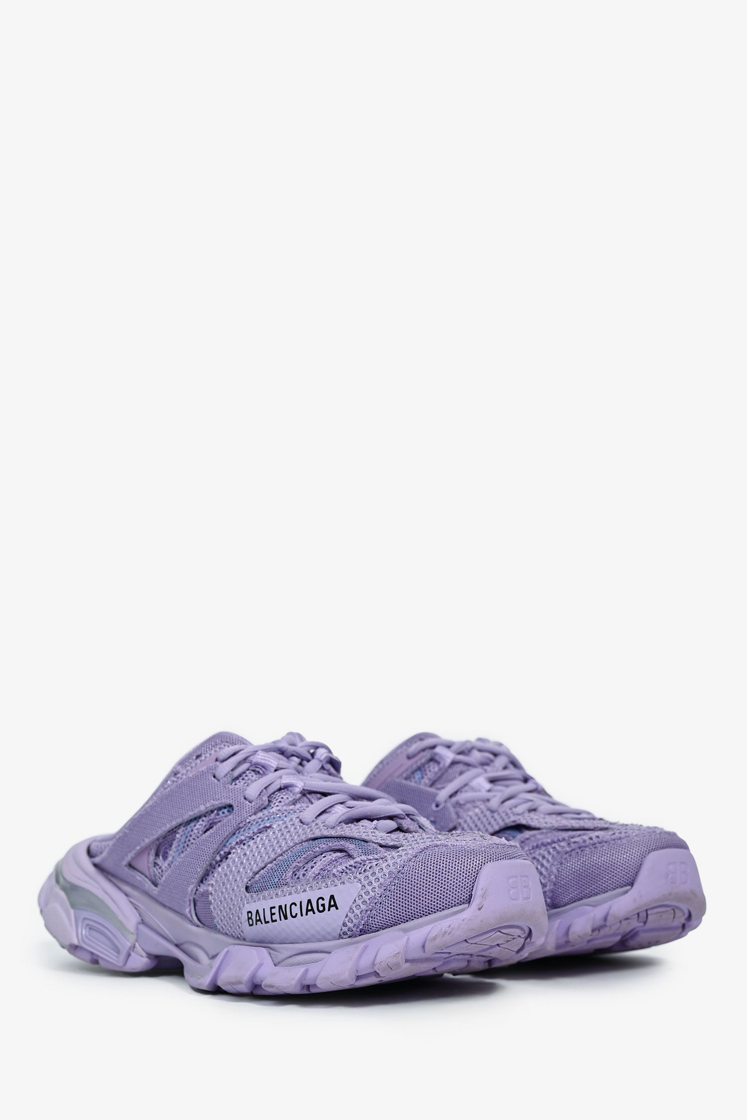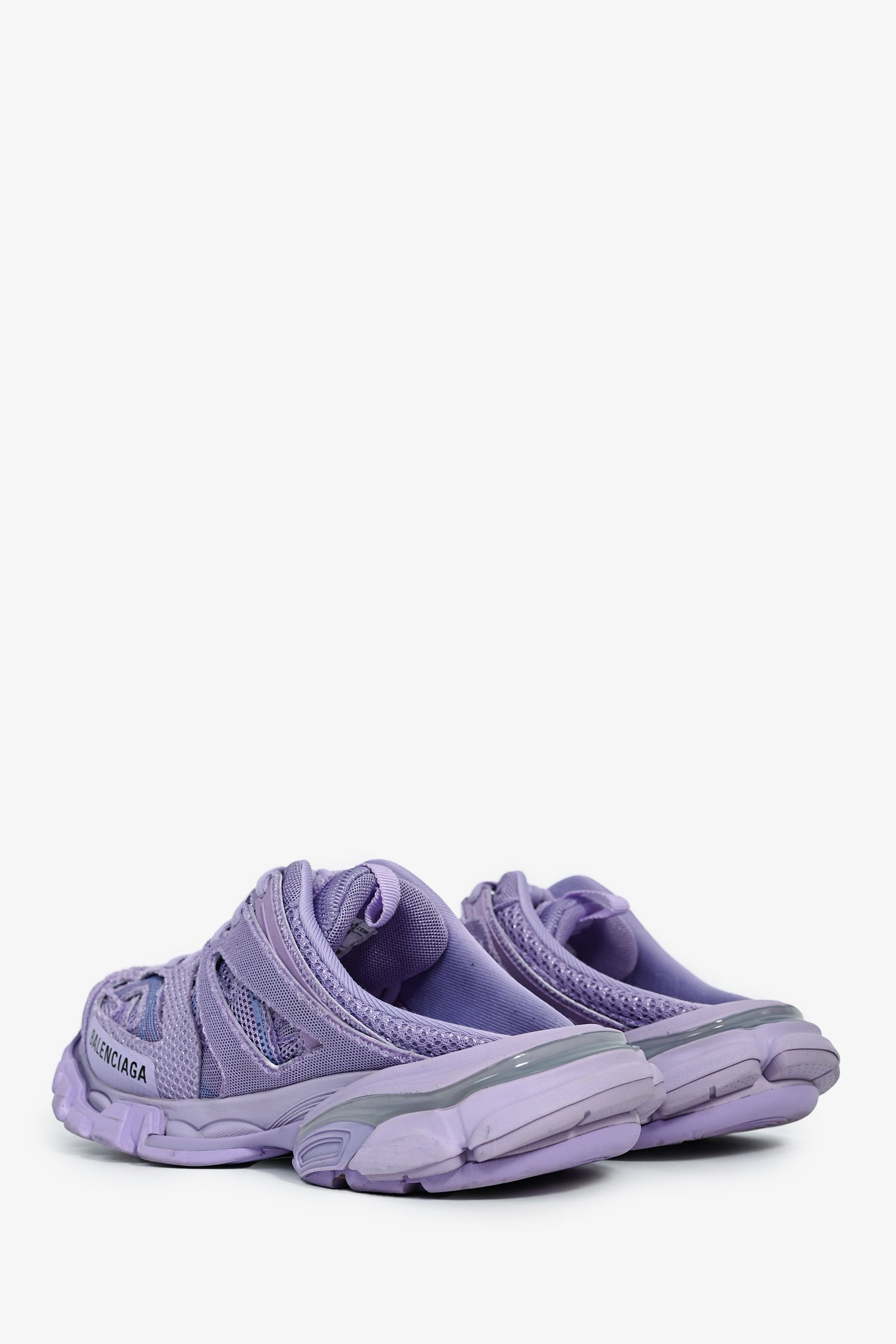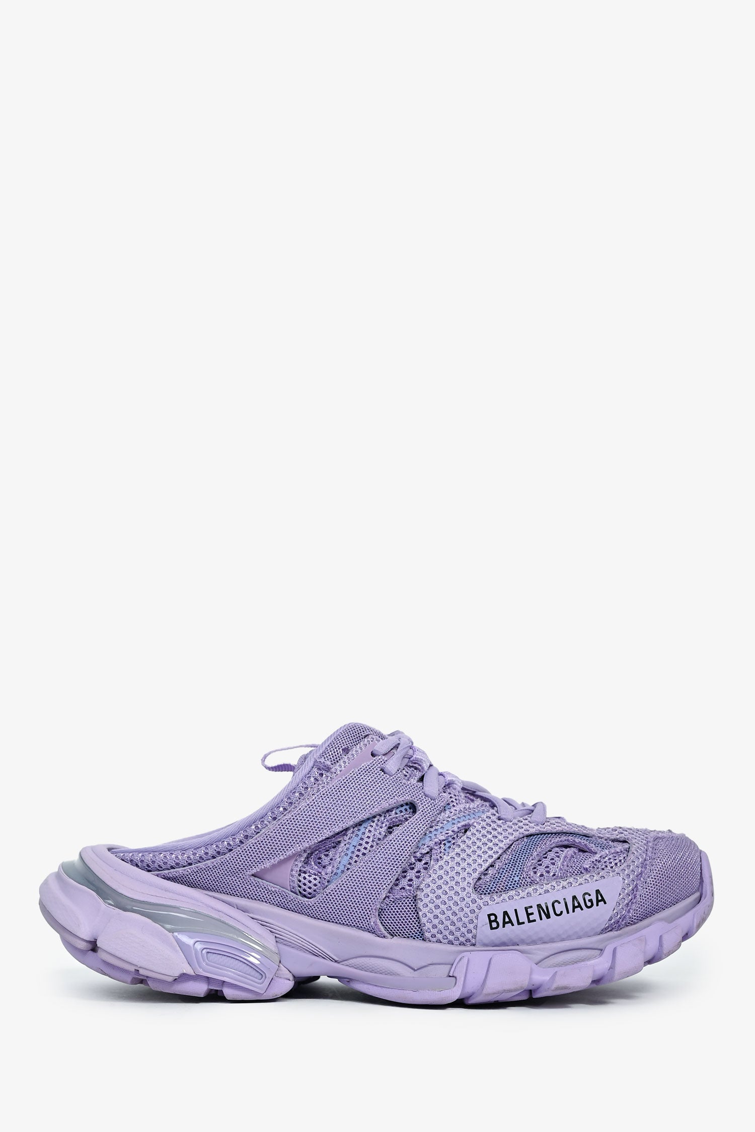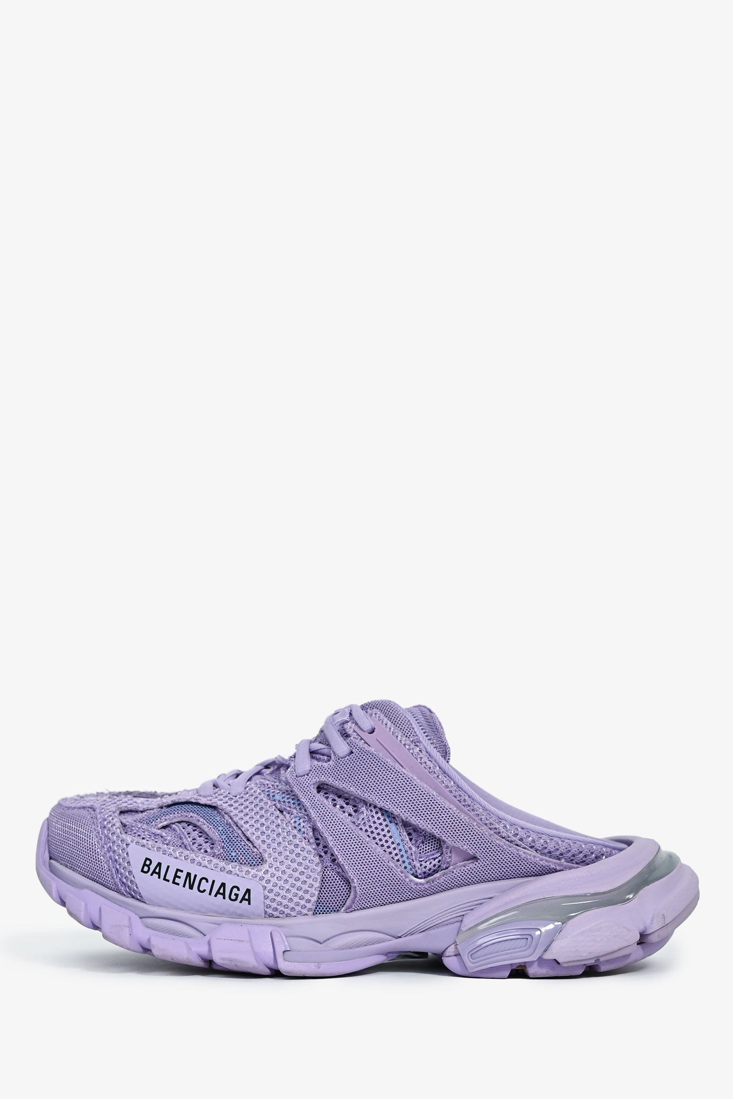 Refresh availabilityBalenciaga Lilac Mesh Track Mule Sneakers. Slip-on. Laced front closure. Mesh-lined interior. Rubber soles. Tonal stitching.