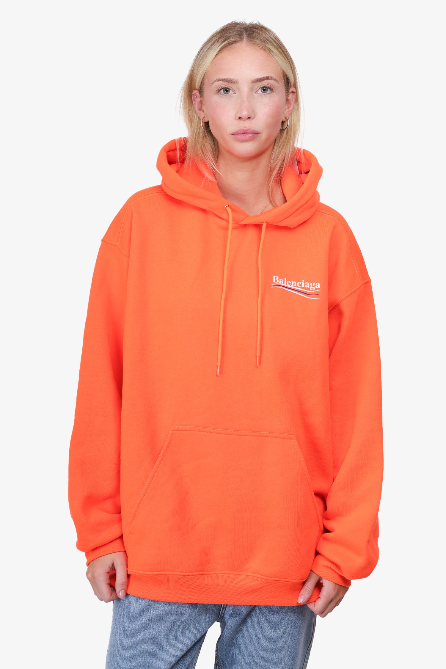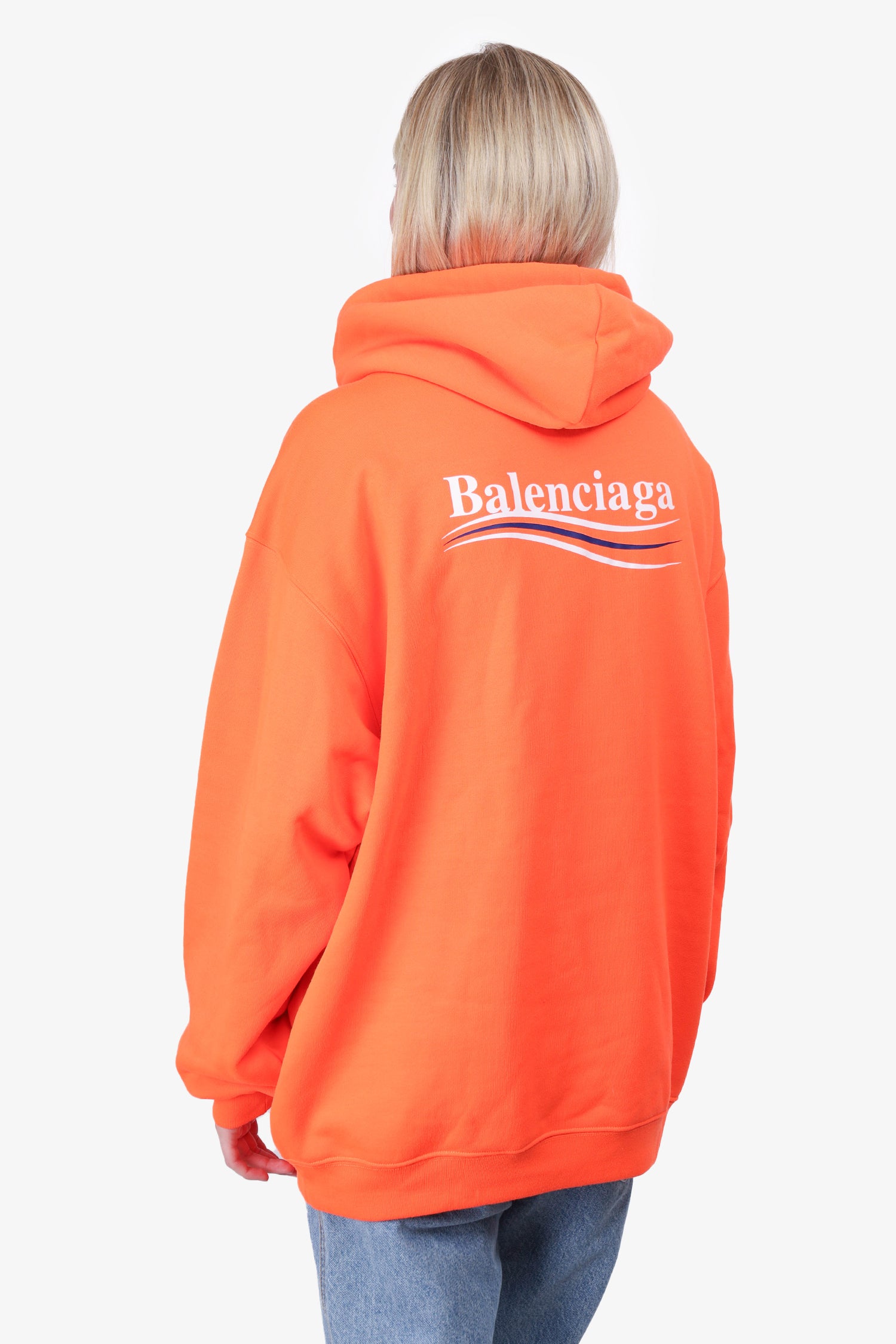 Balenciaga Orange Logo-Print Jersey Hoodie Size M
