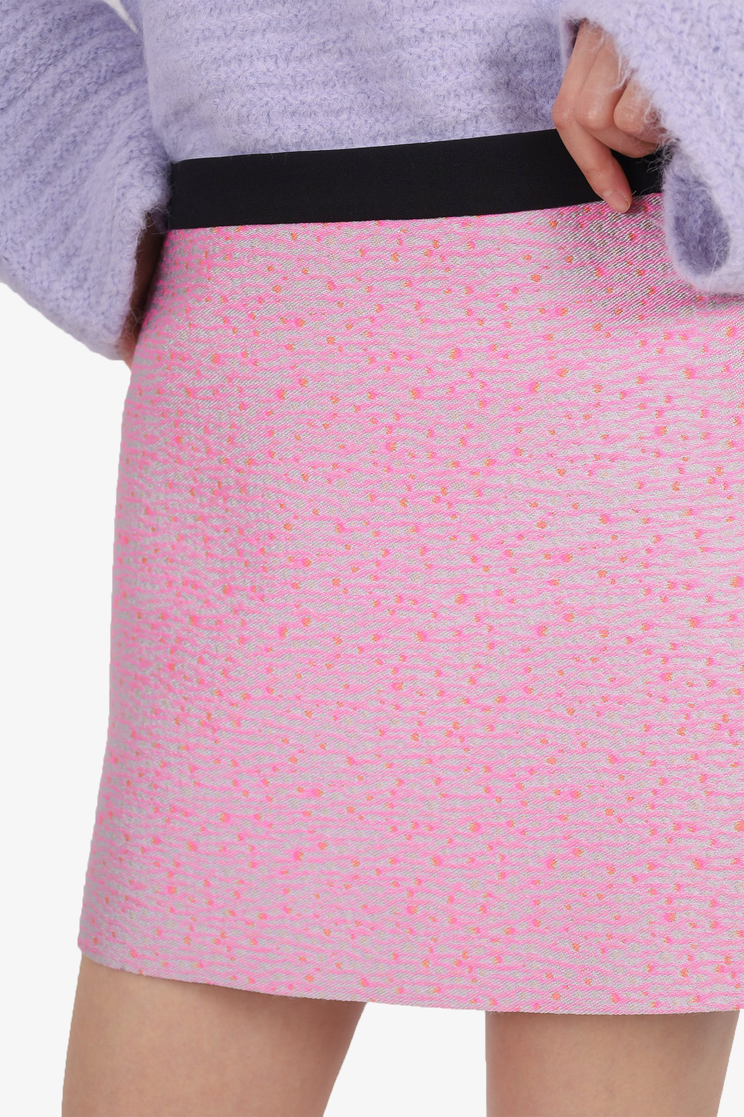 Refresh availabilityBalenciaga Pink/Black Tweed Mini Skirt. Slip-on. Side zip and hook closure. Lined interior. Tonal stitching.