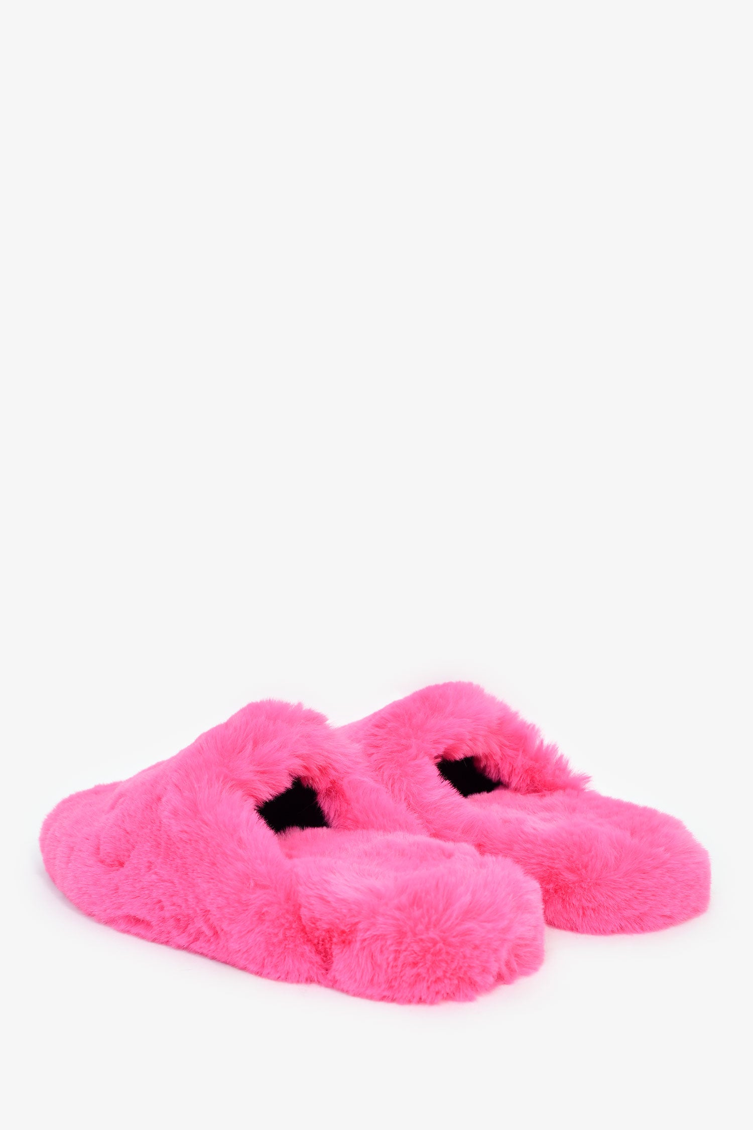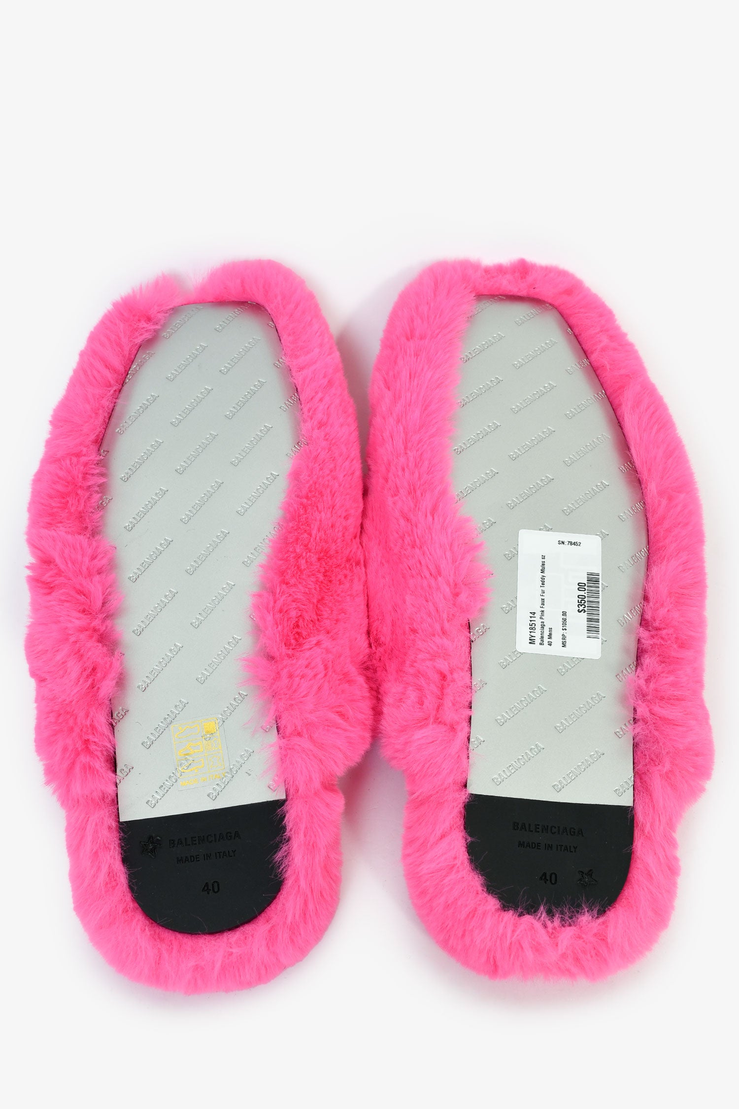 Refresh availabilityBalenciaga Pink Faux Fur Teddy Mules. Slip-on. Round toe. Metallic bottom soles. Tonal stitching.