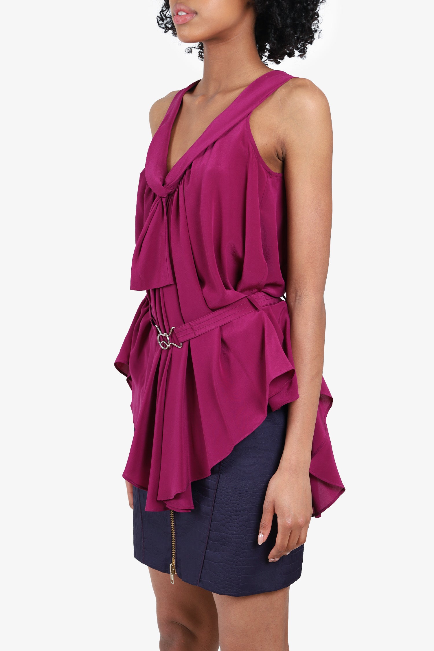 Balenciaga Purple Silk Pleated Belted Blouse Size 38