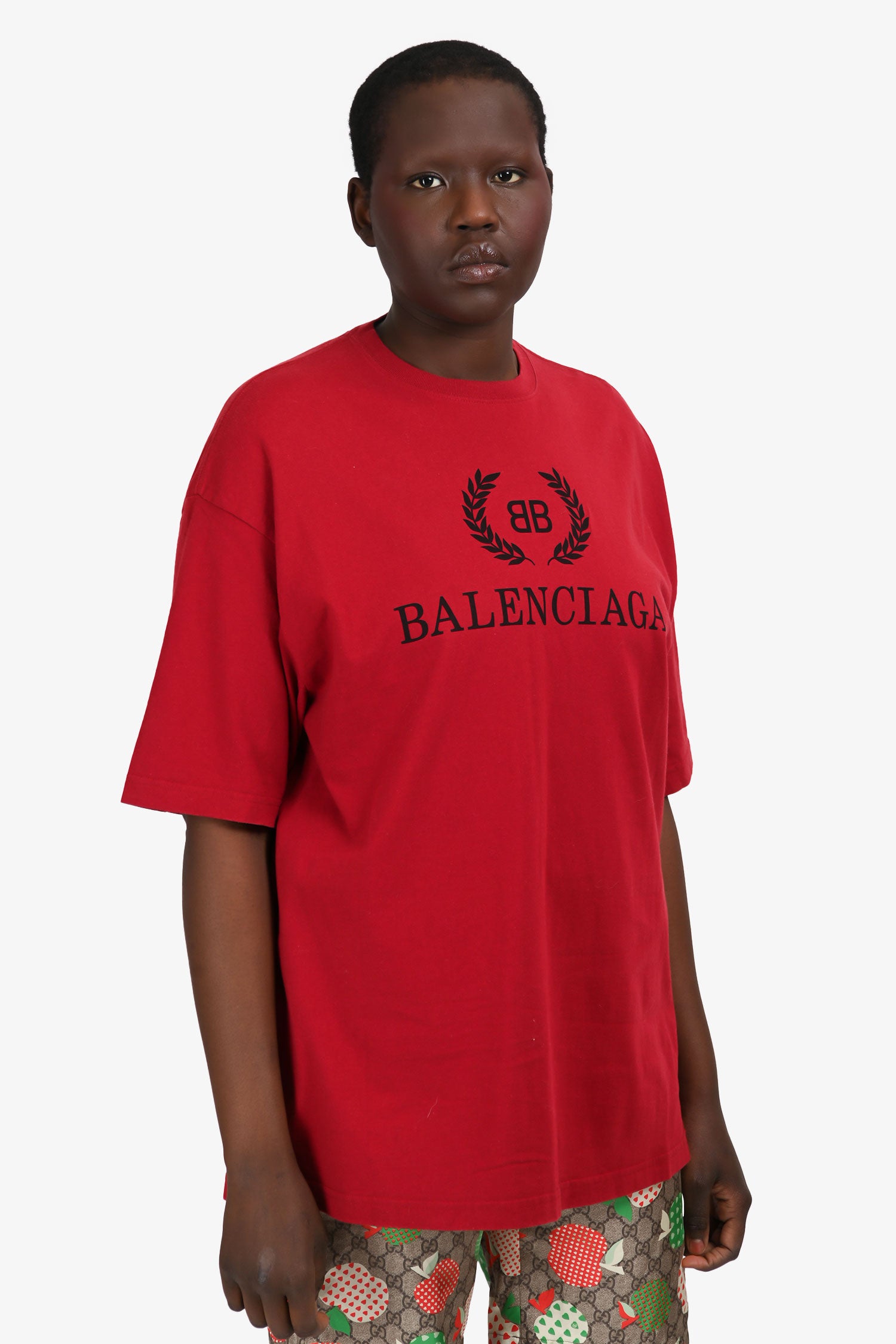 Balenciaga Red Cotton Logo T-Shirt Size M Mens