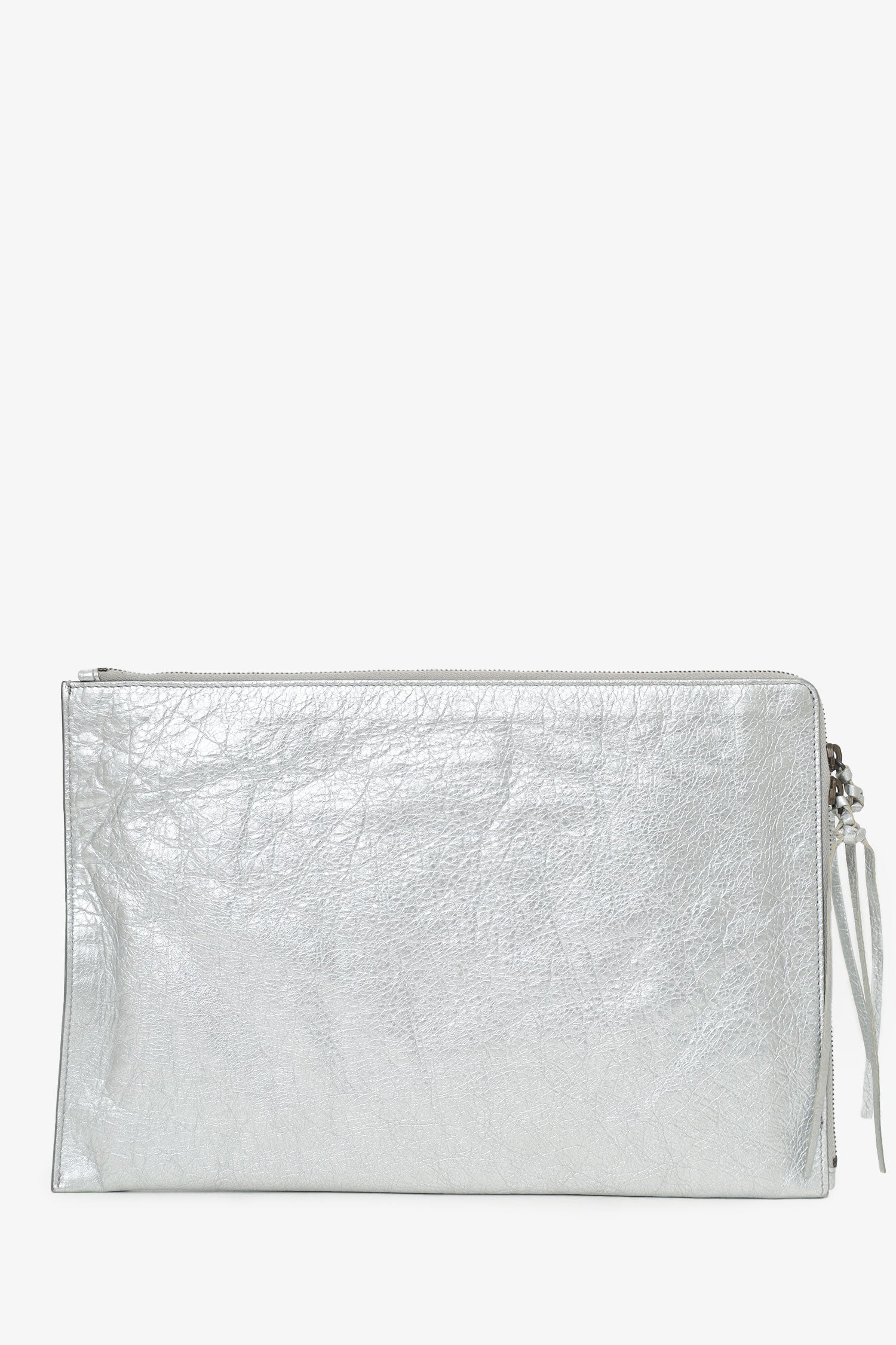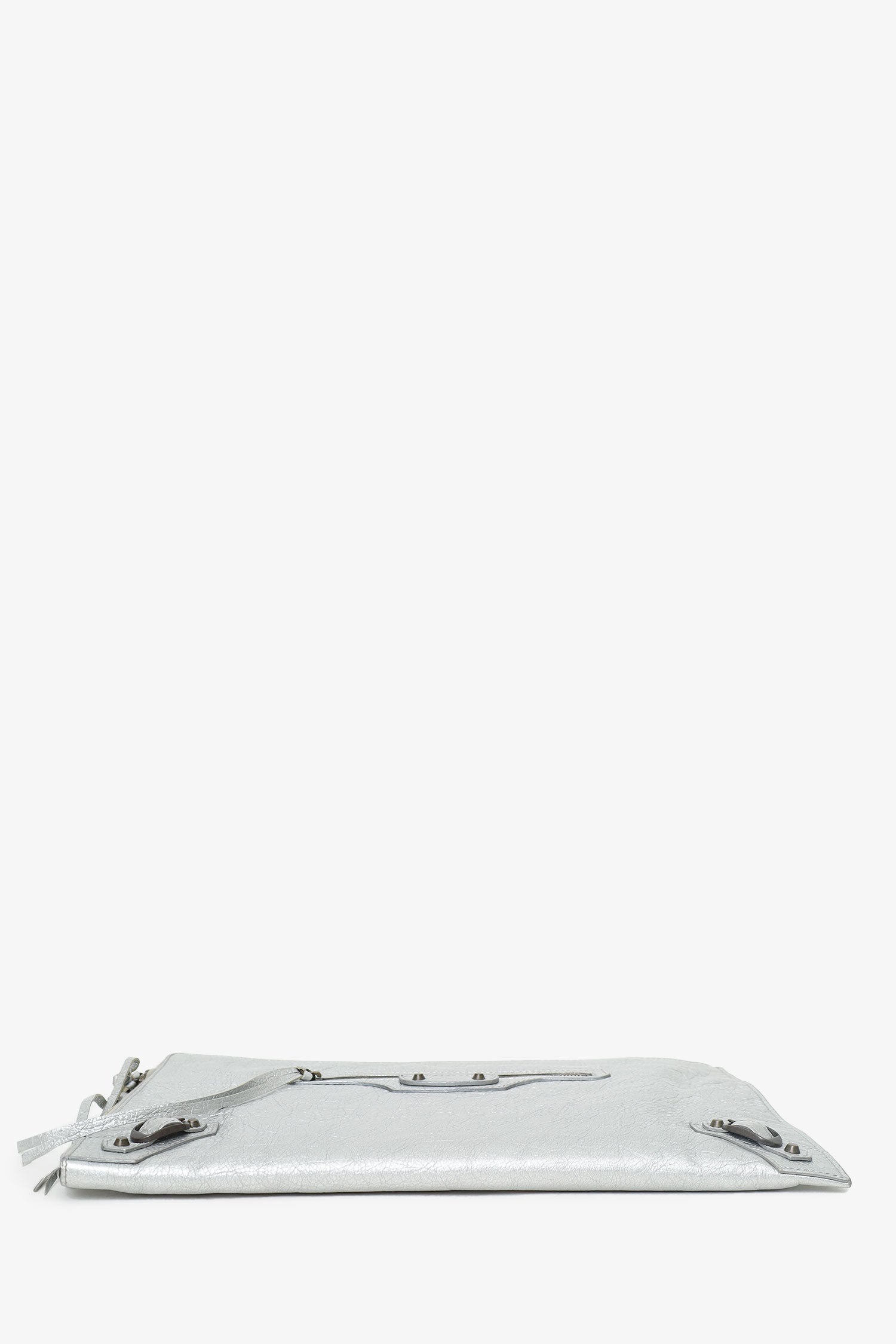 Balenciaga Silver Metallic Lambskin Leather Motocross Clutch
