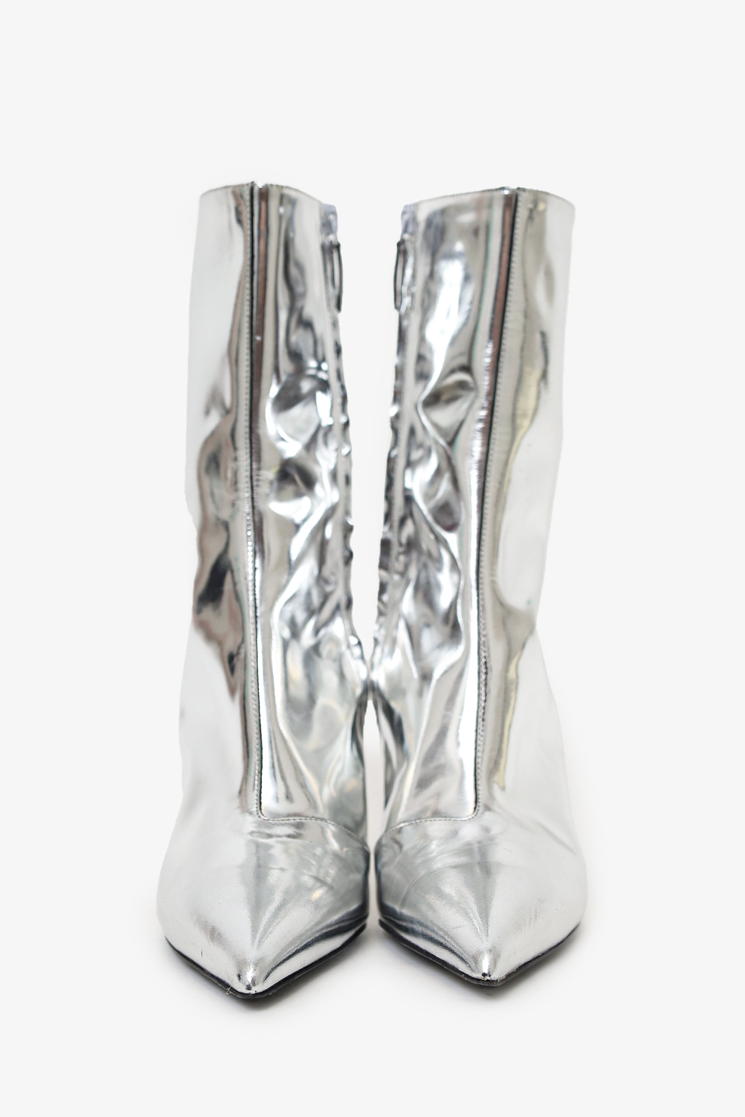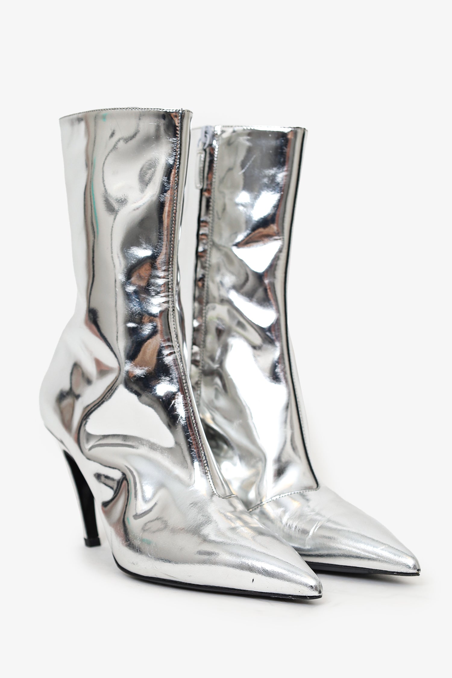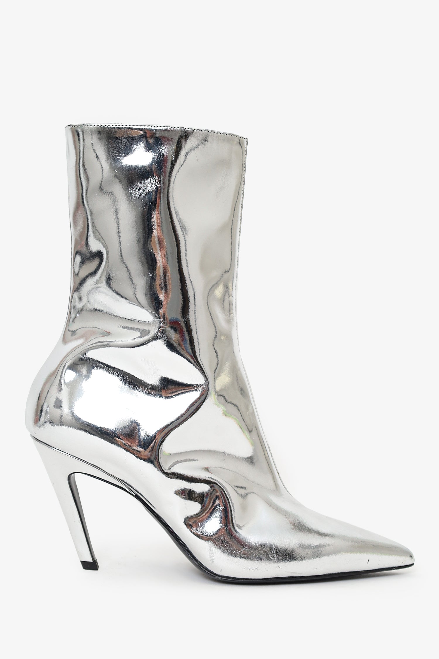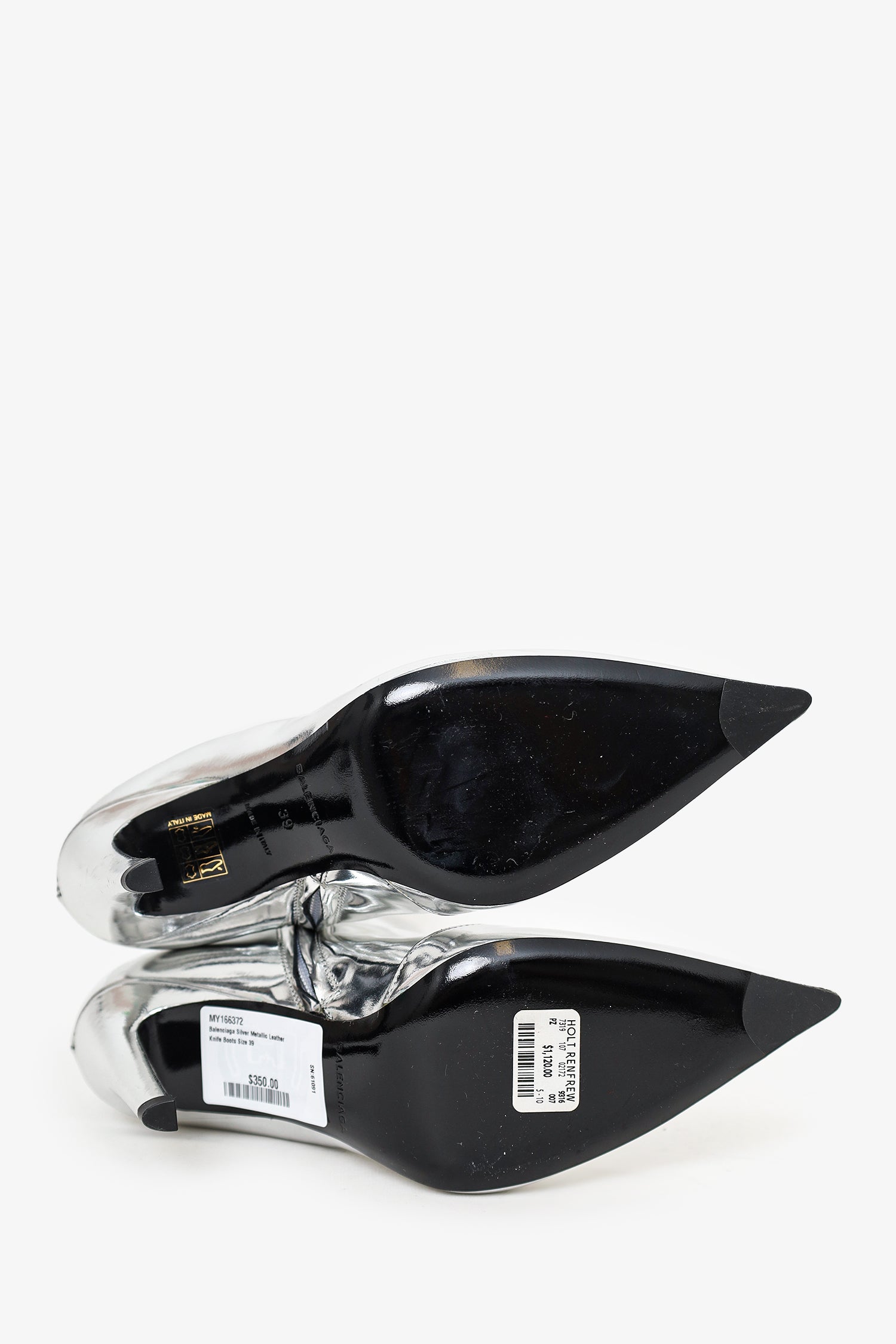 Refresh availabilityBalenciaga Silver Metallic Leather Knife Boots Size 39. Pull-on. Pointed toe. Side-zip closure. Tonal stitching.
