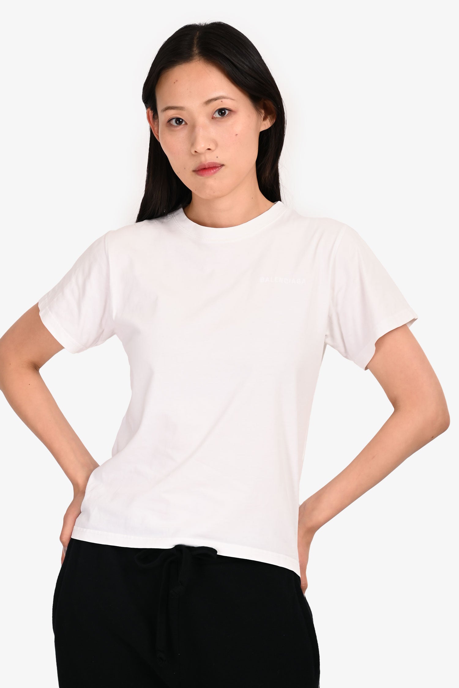Balenciaga White Cotton Logo Graphic T-Shirt Size M