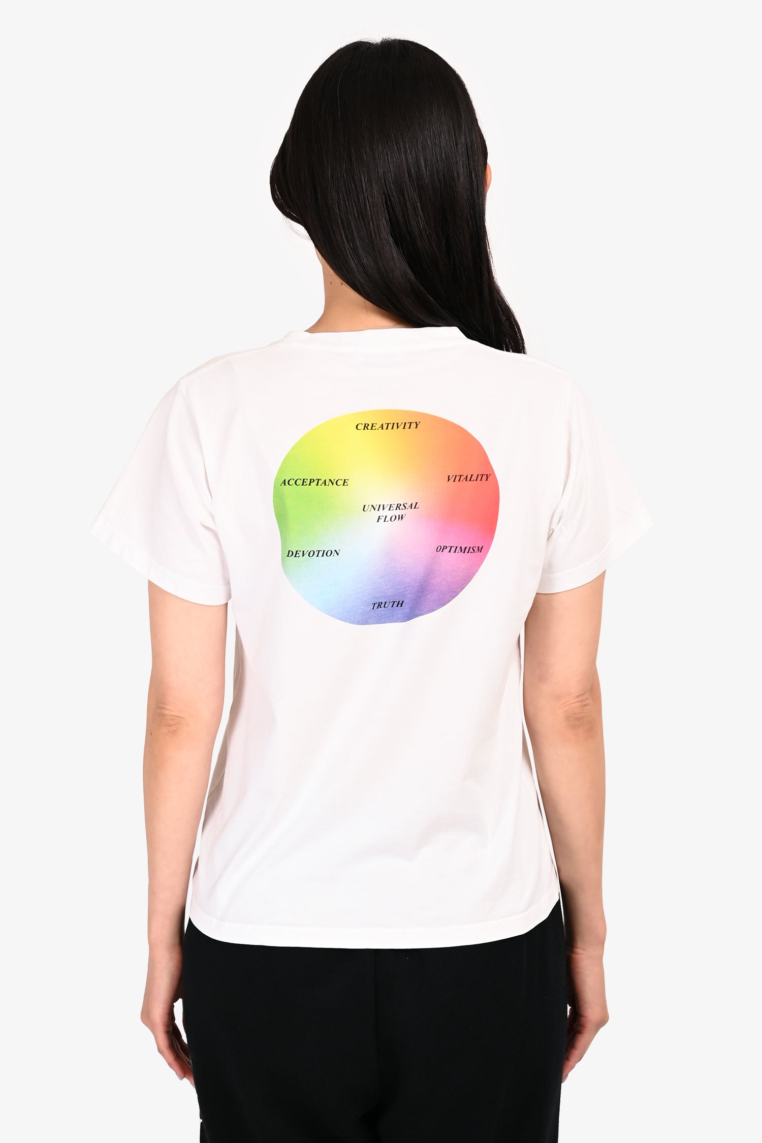Refresh availabilityBalenciaga White Cotton Logo Graphic T-Shirt. Pull-on. Round neckline. Tonal stitching.