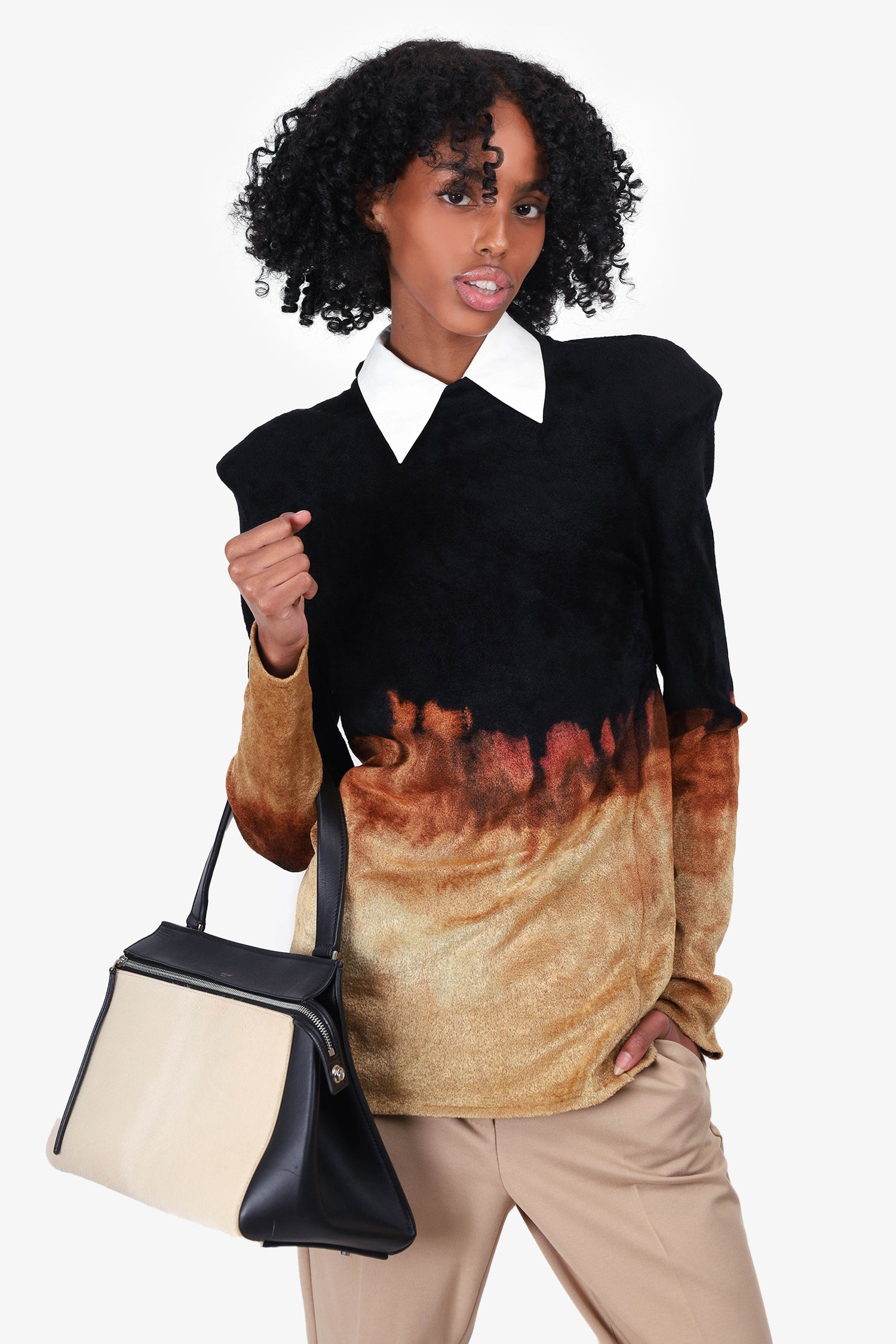 Balmain Black/Brown Ombre Long-Sleeve Sweater Size 40