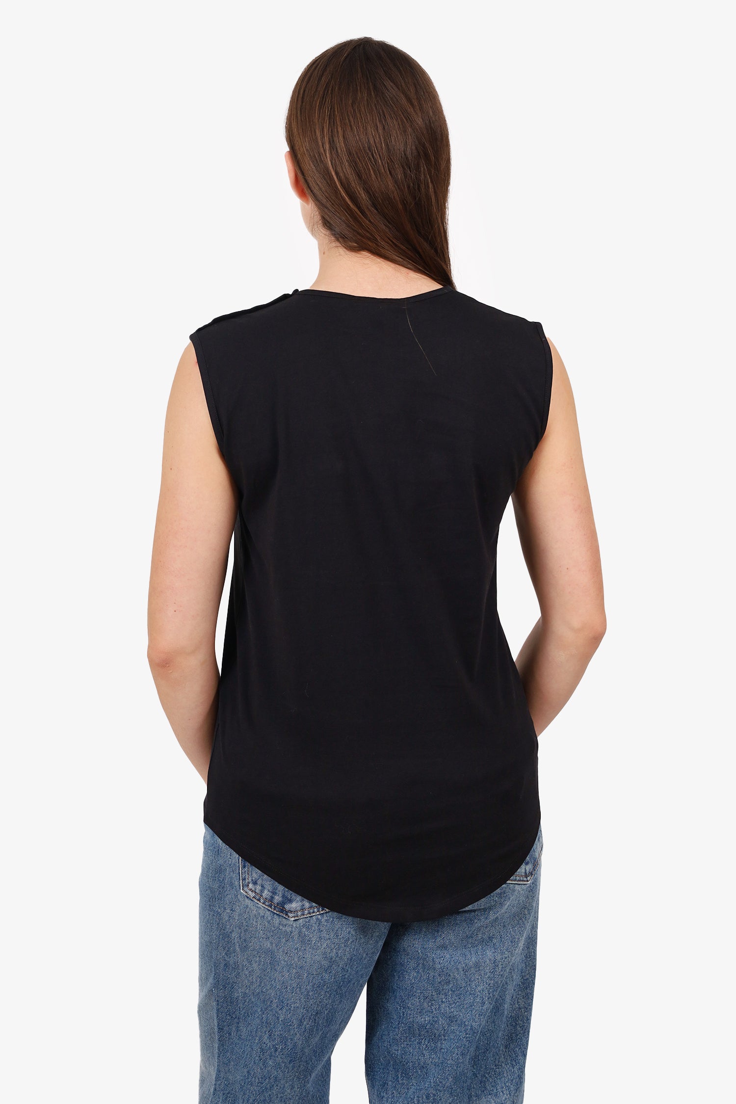 Balmain Black Button Logo Sleeveless T-Shirt Size 36