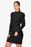 Balmain Black/Gold Metallic Shoulder Pad Mini Dress Size 44