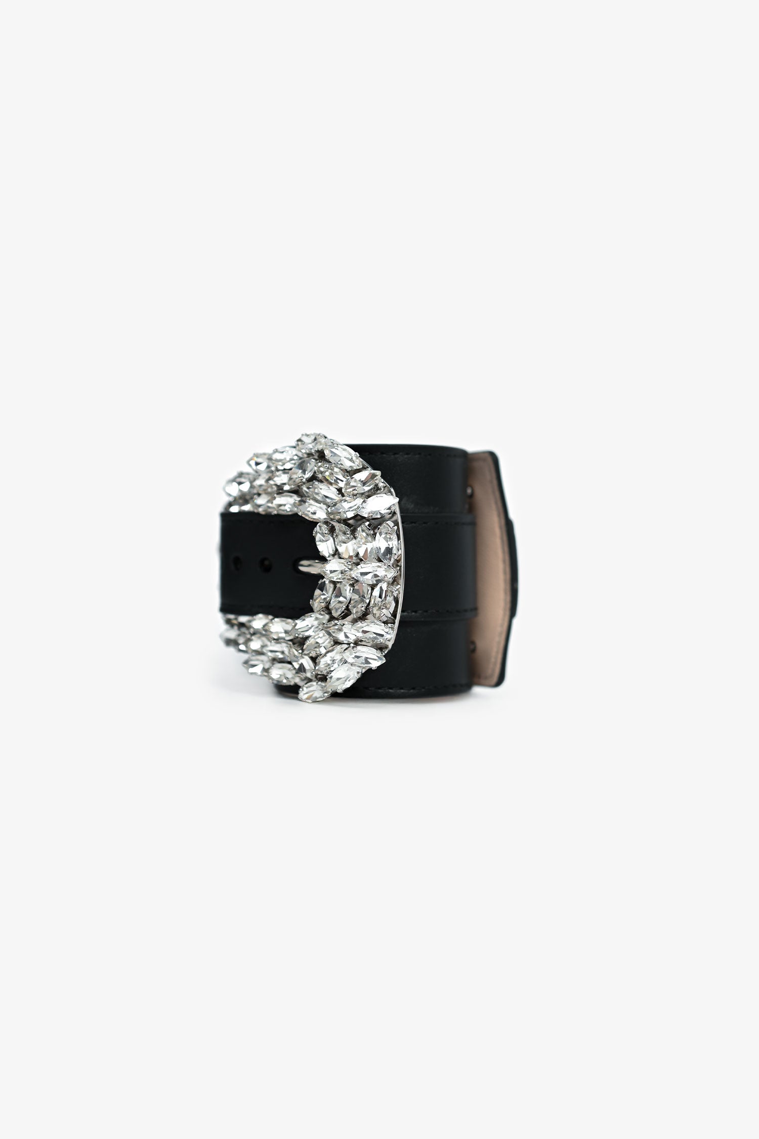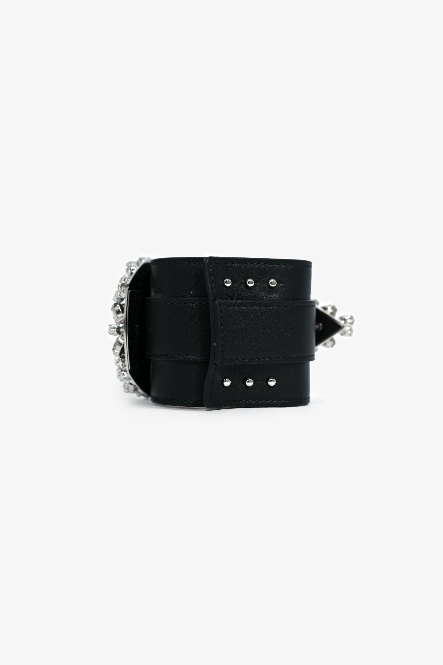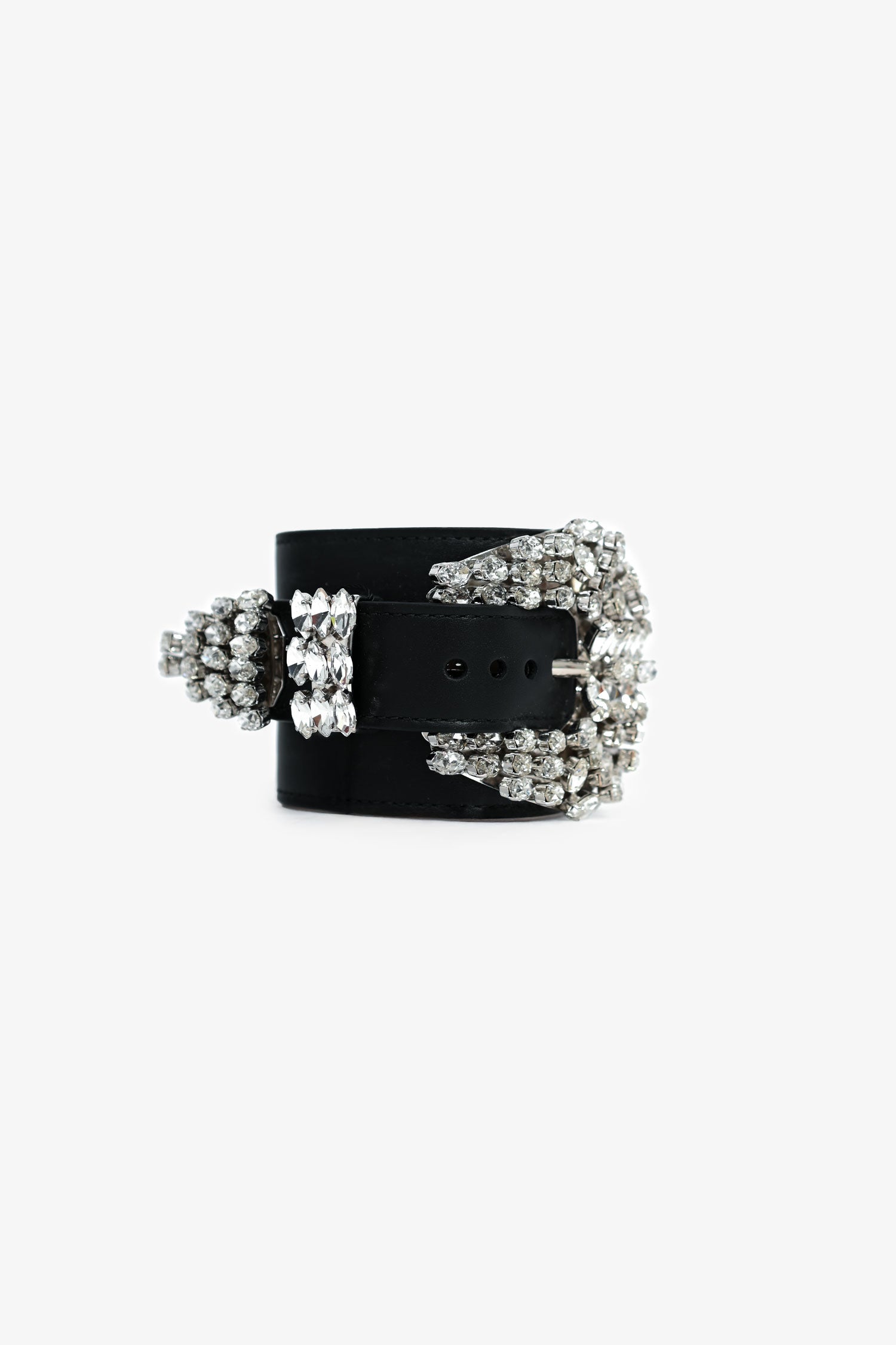 Refresh availabilityBalmain Black Leather Crystal Buckle Bracelet. Push stud closure.