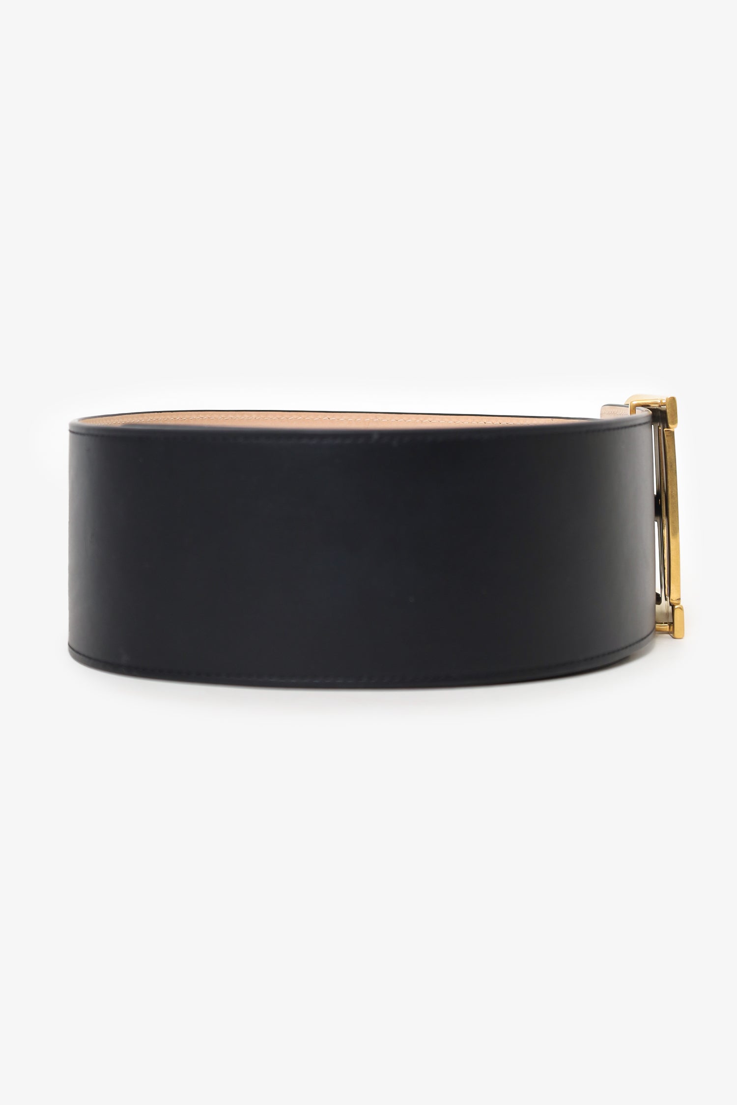Balmain Black Leather Wide 'B' Buckle Belt Size 75