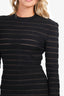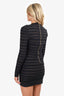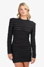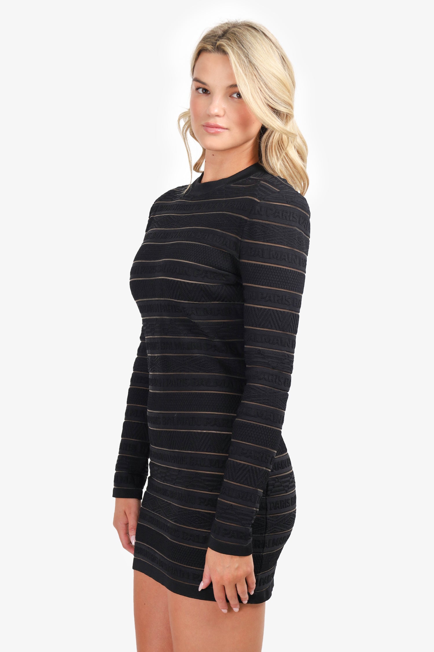 Balmain Black Logo Mesh Striped Long Sleeve Mini Dress Size 42