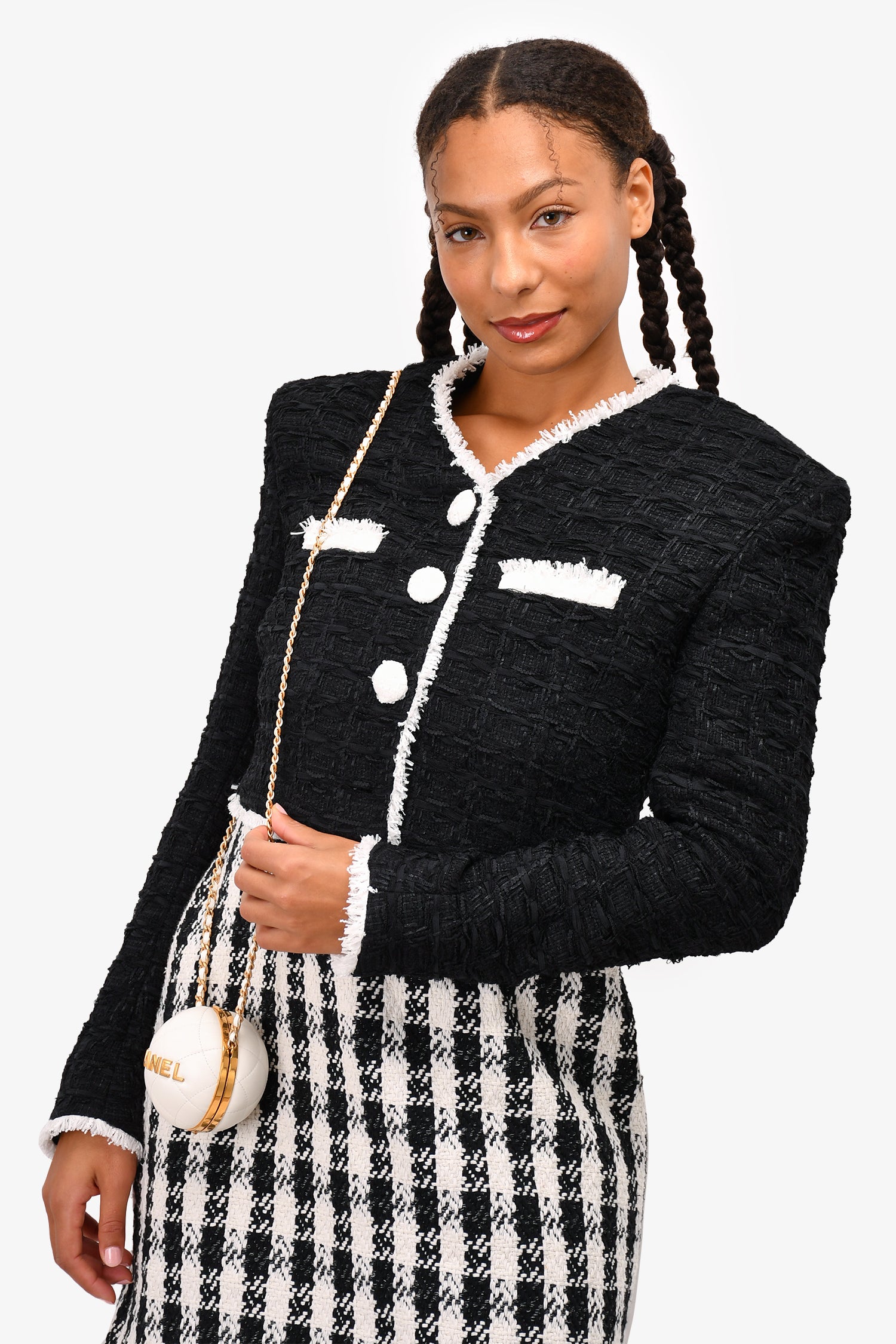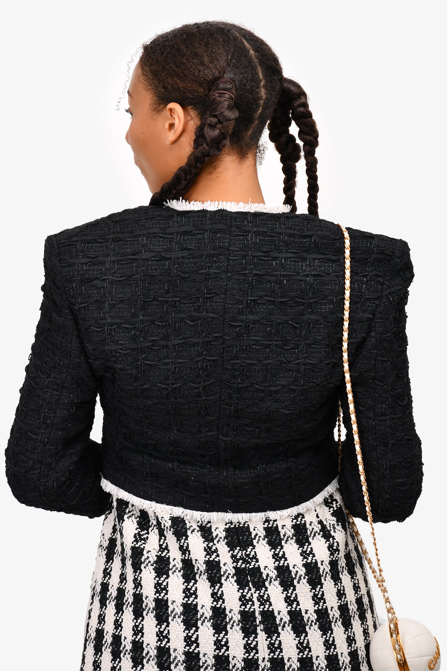 Balmain Black/White Tweed Cropped Jacket Size 36