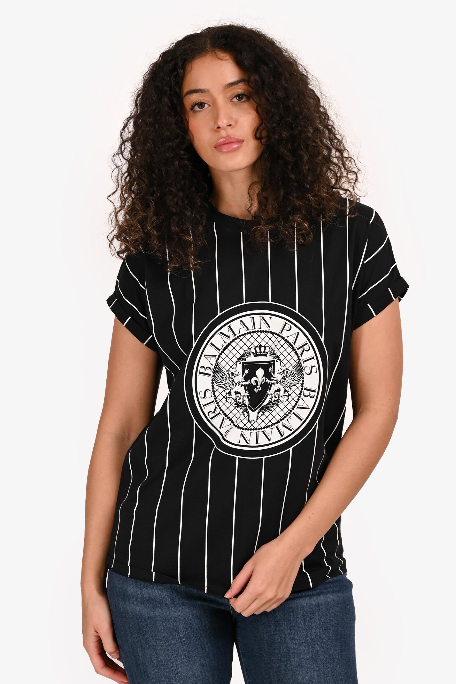 Balmain Black/White Stripe Logo T-Shirt Size 36