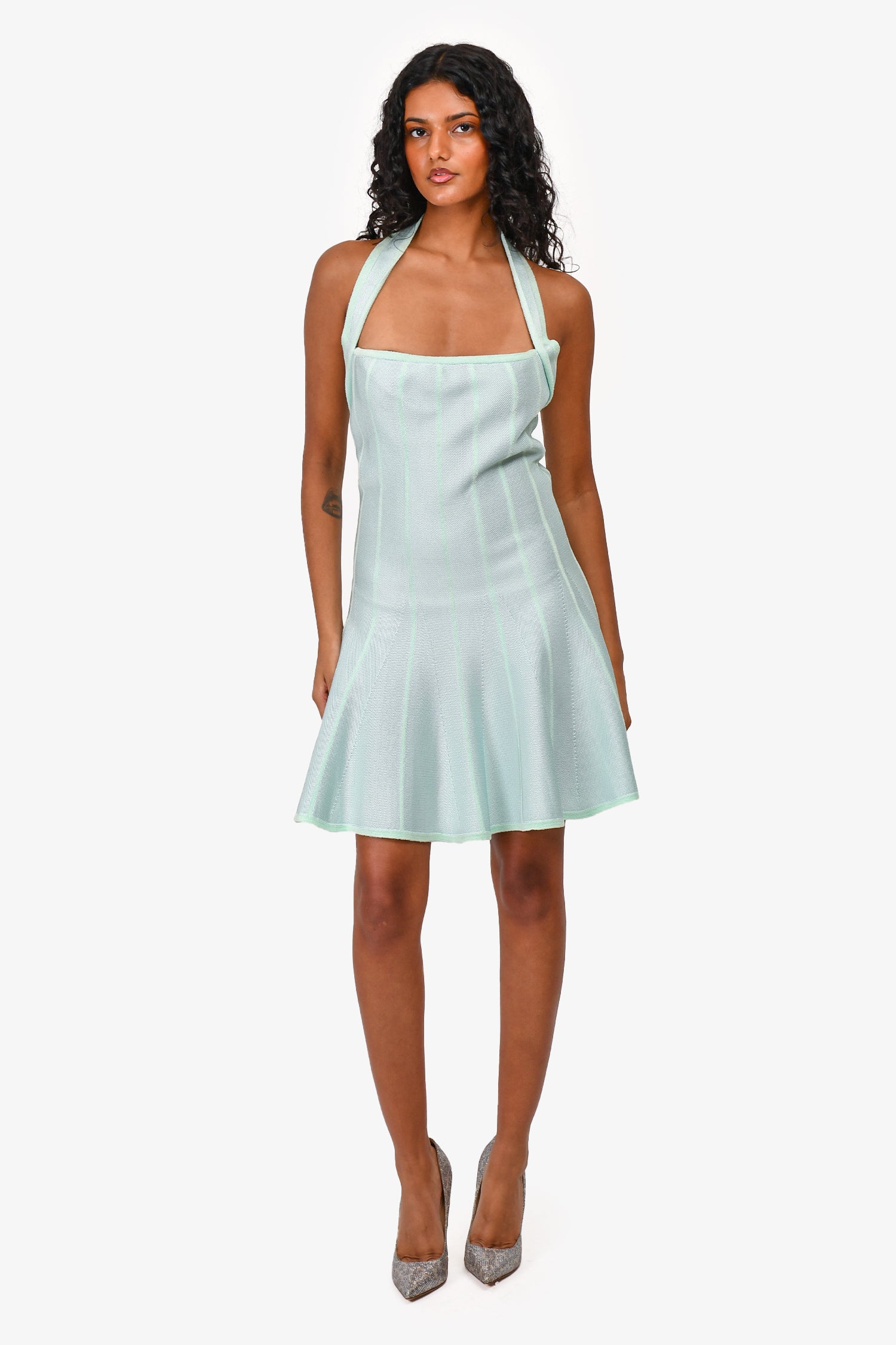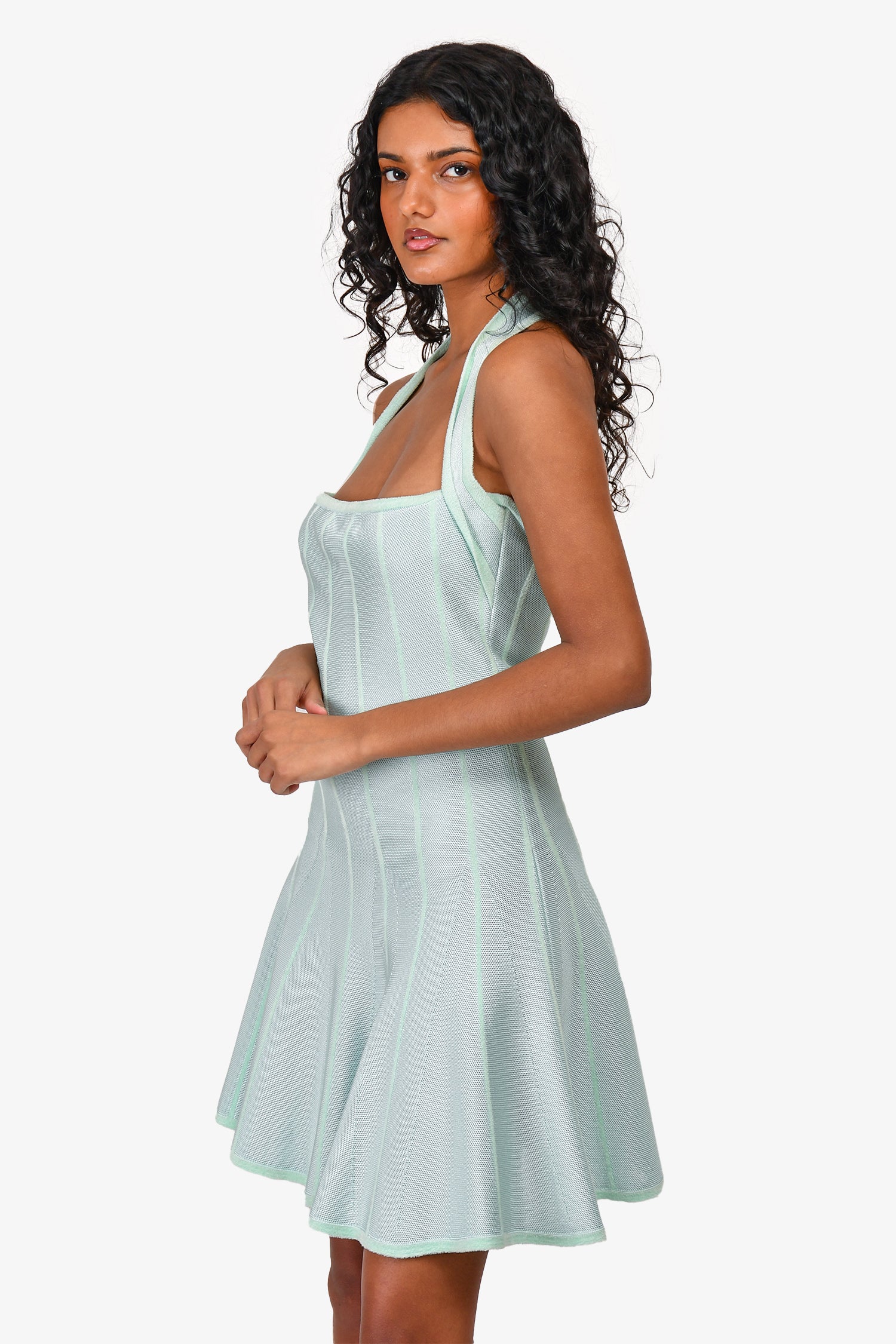 Balmain Light Blue Knit Halter Neck Mini Dress Size 40