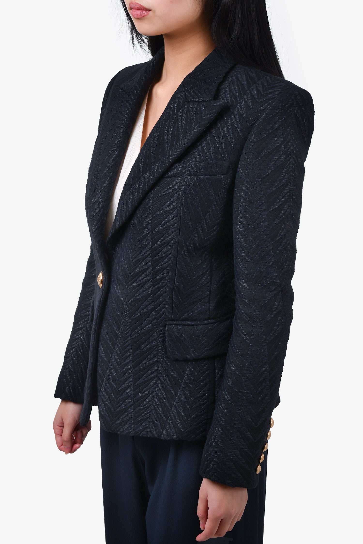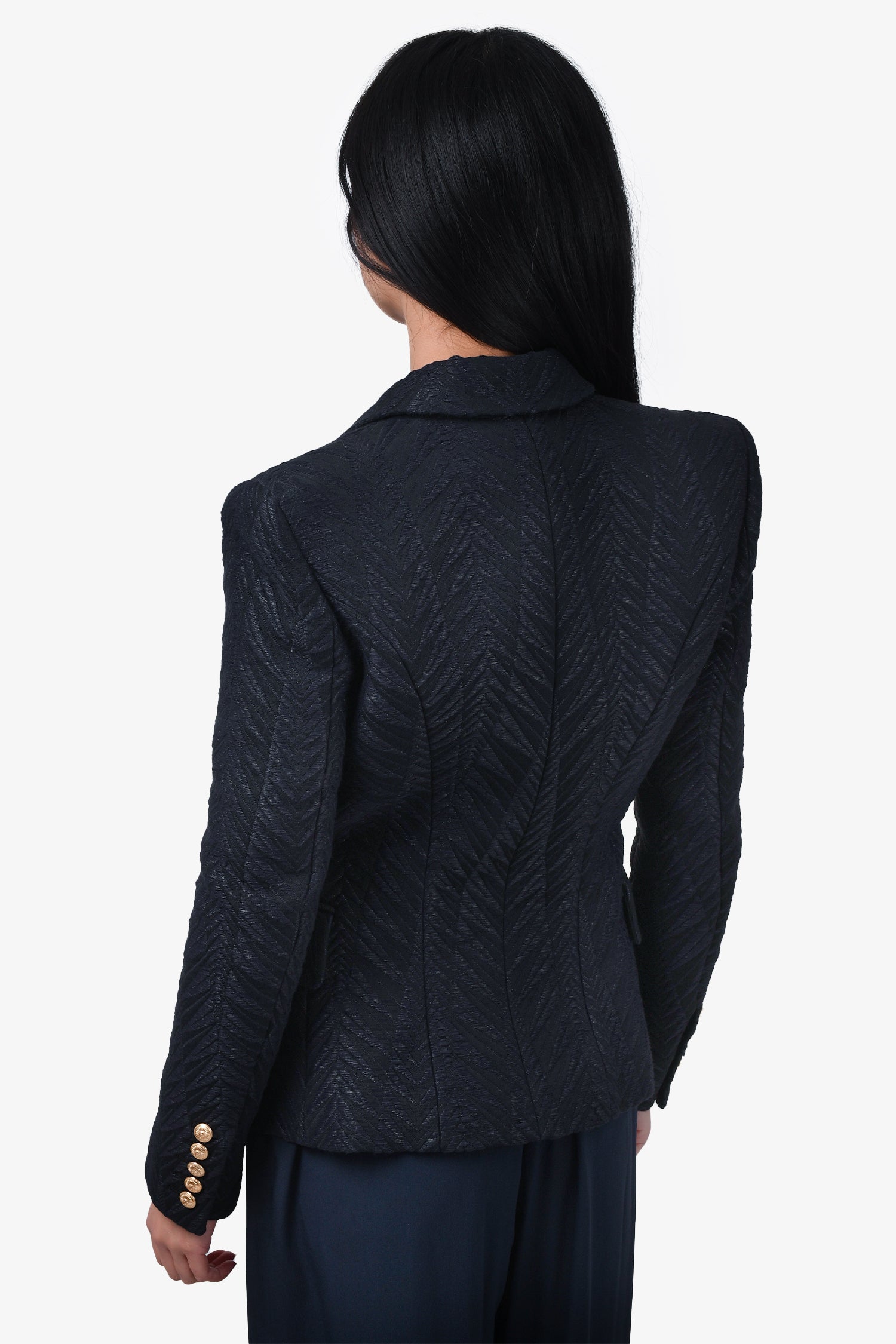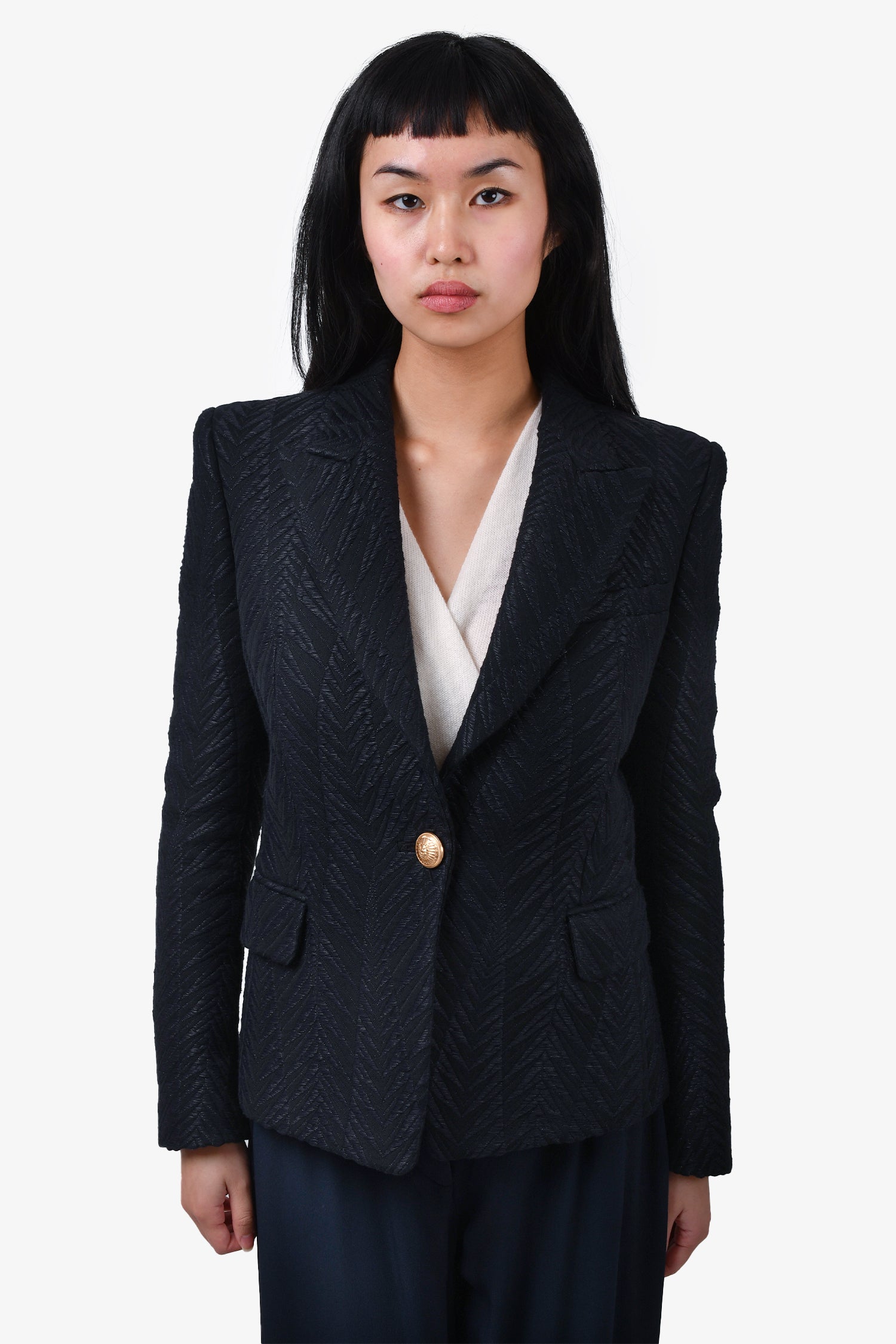 Balmain Navy Textured Single Breasted Blazer Size 38
