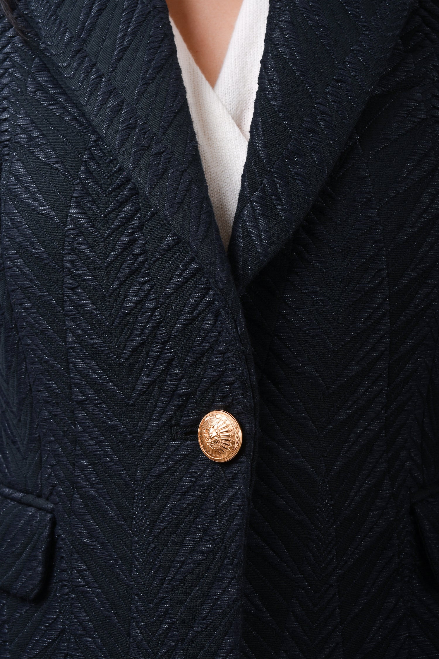 Refresh availabilityBalmain Navy Textured Single Breasted Blazer. Single front button closure. Lined. Padded shoulders. Tonal stitching.