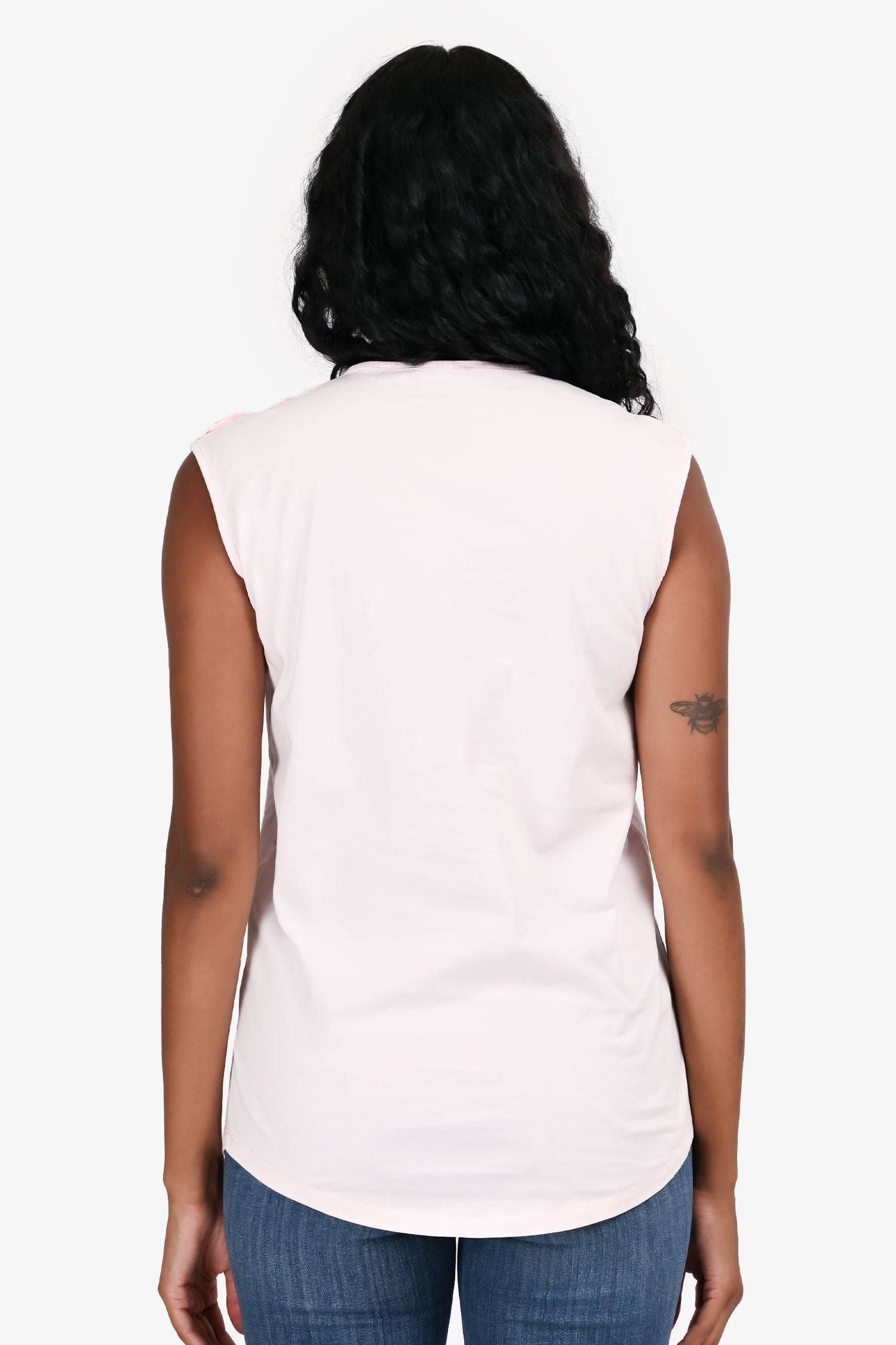 Balmain Pink/White Sleeveless Tank Top with Gold Buttons Size XS