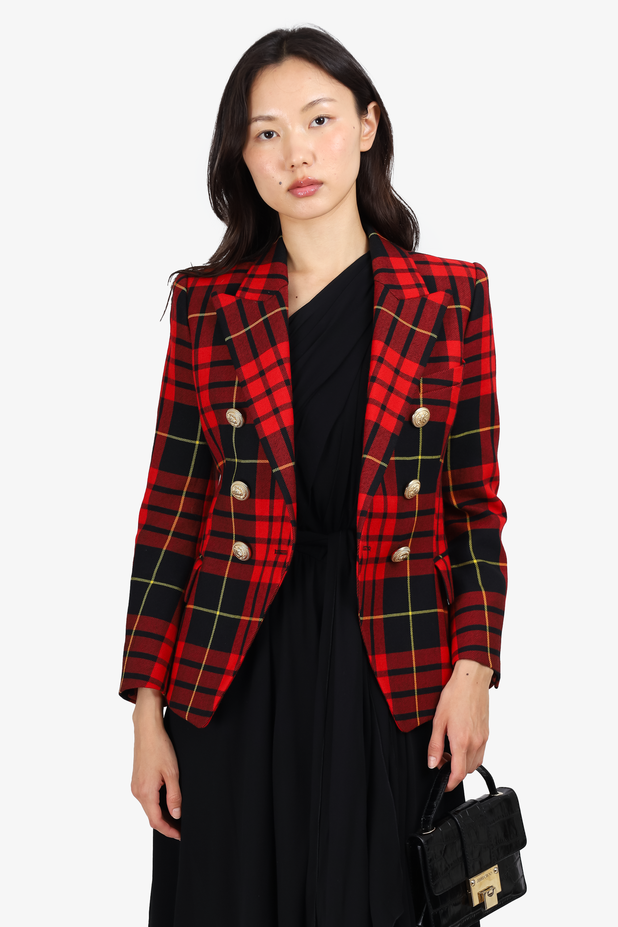 Balmain Red Plaid Blazer with Gold Buttons Size 38