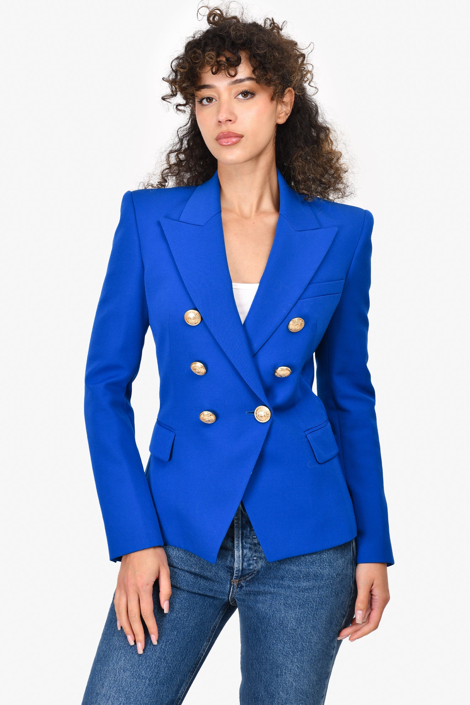 Refresh availabilityBalmain Royal Blue Wool Double Breasted Blazer. Padded shoulders. Front button closures. Lined.