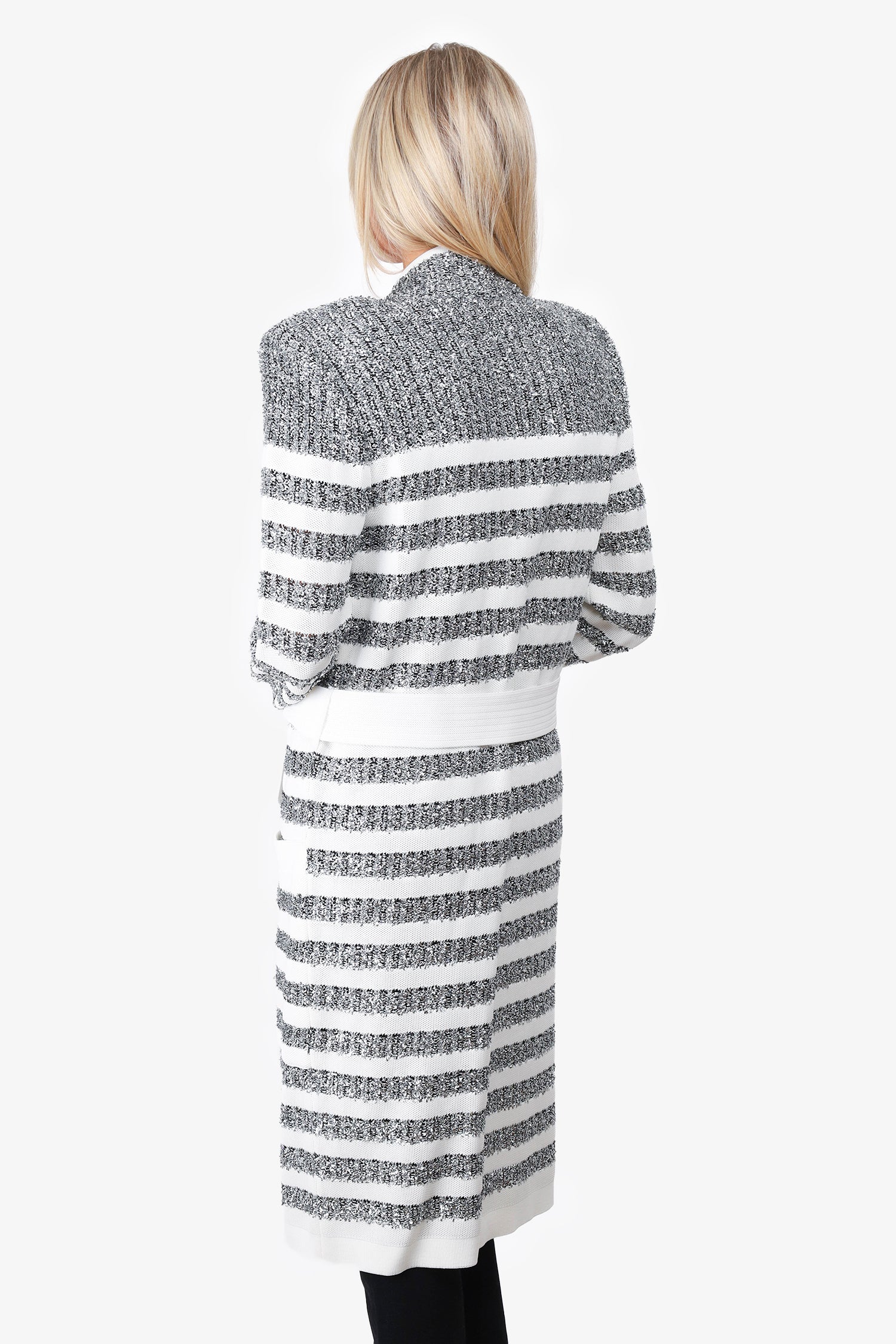Balmain Silver/White Metallic Striped Long Cardigan Size 40 'As Is'