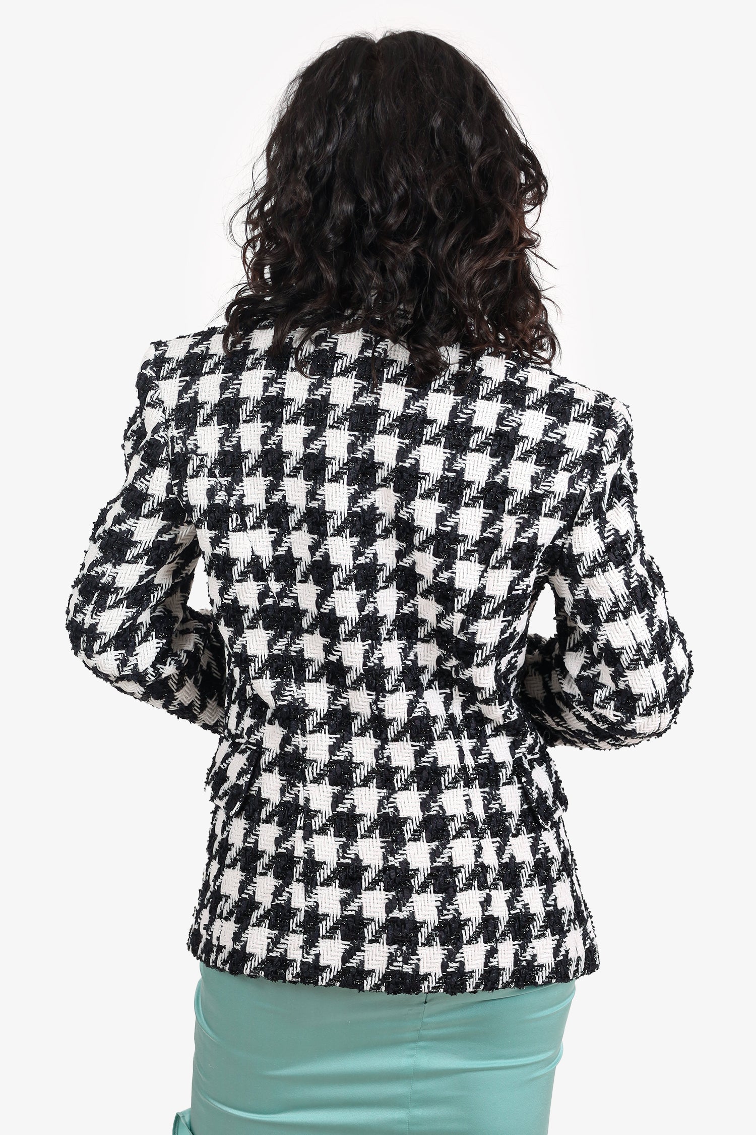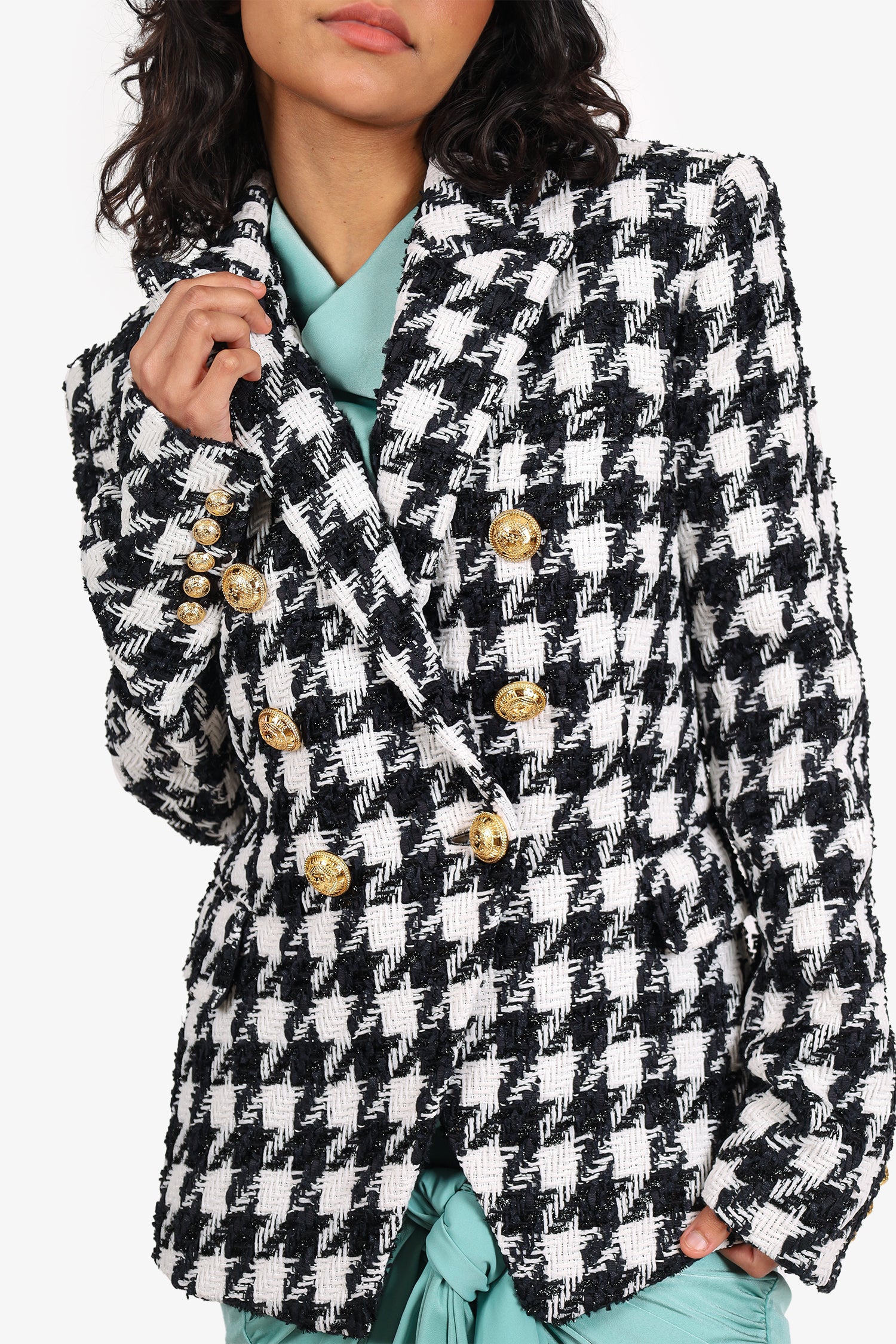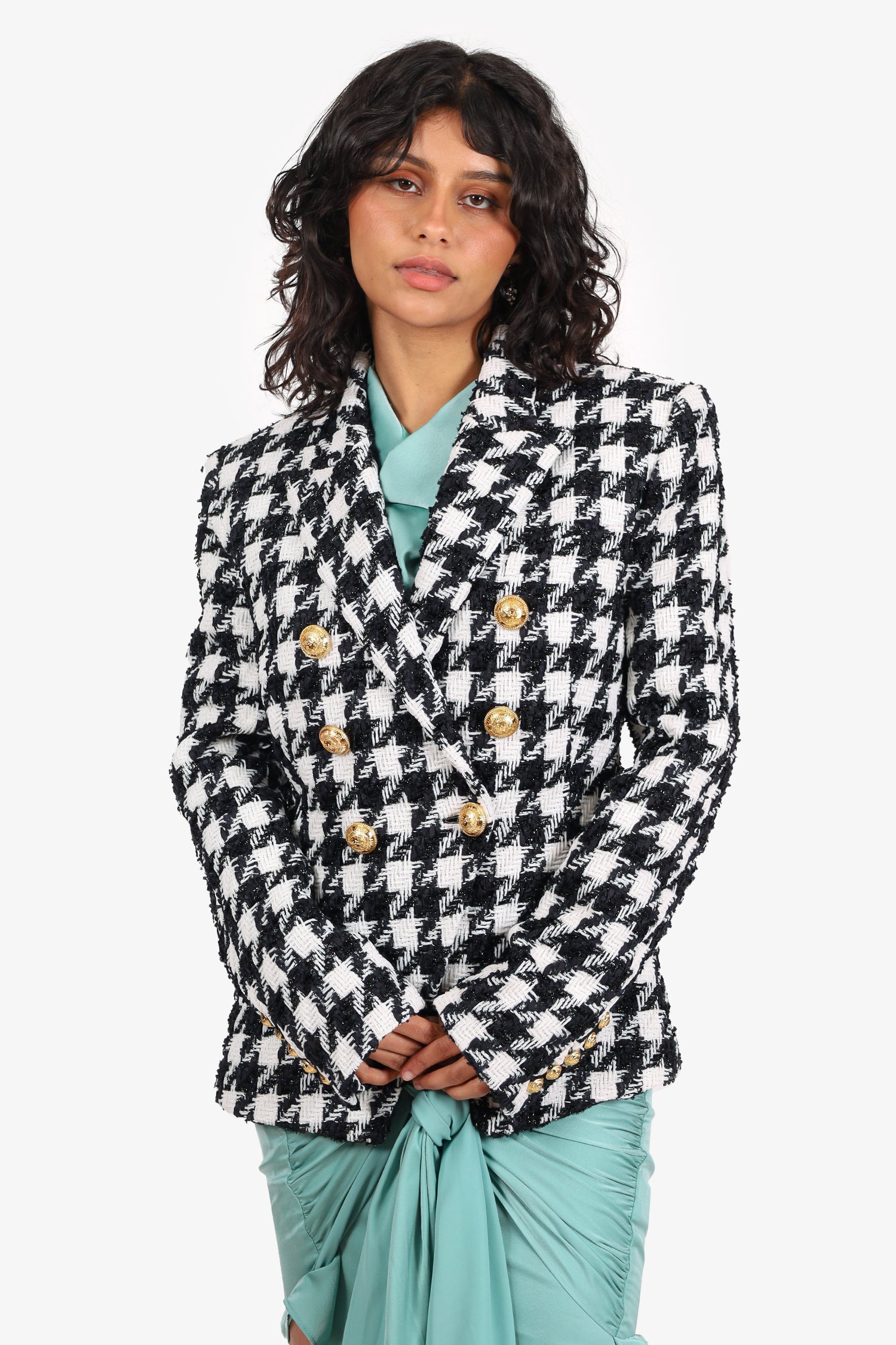 Balmain White/Black Houndstooth Tweed Double Breasted Blazer Size 38
