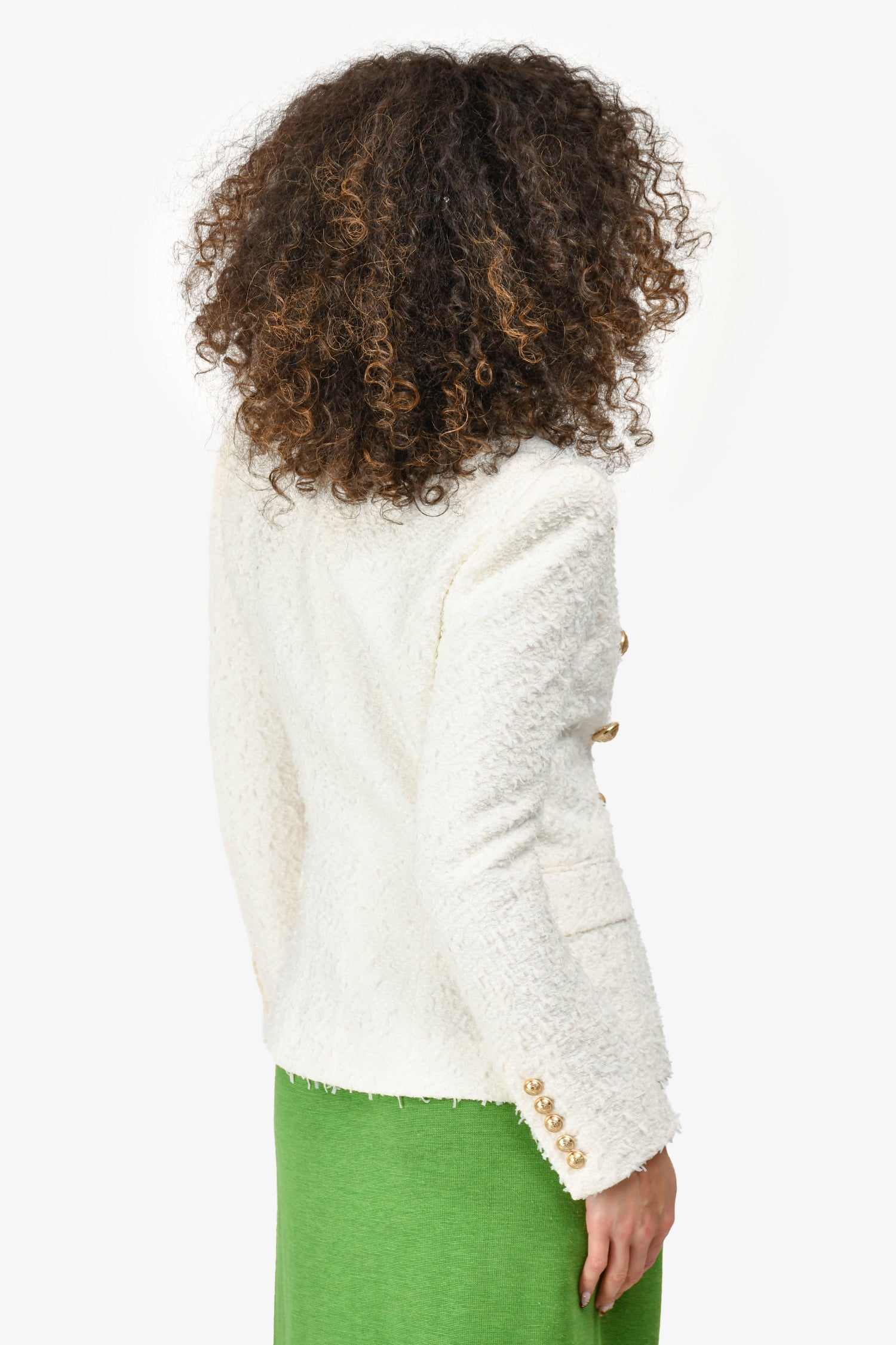 Refresh availabilityBalmain White Double Breasted Blazer Jacket. Open design with single button closure. Two front faux flap pockets. Lined interior. Tonal stitching.