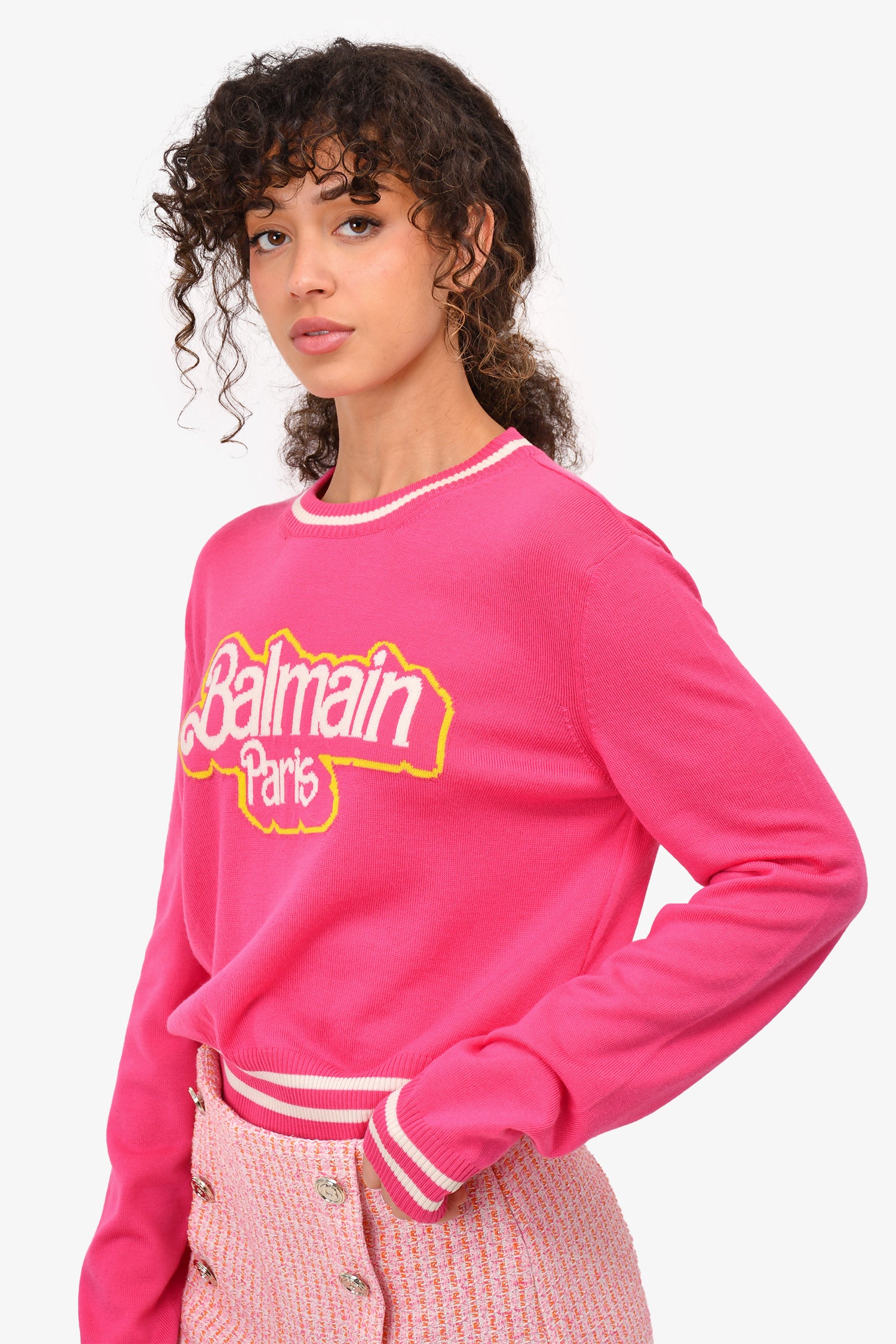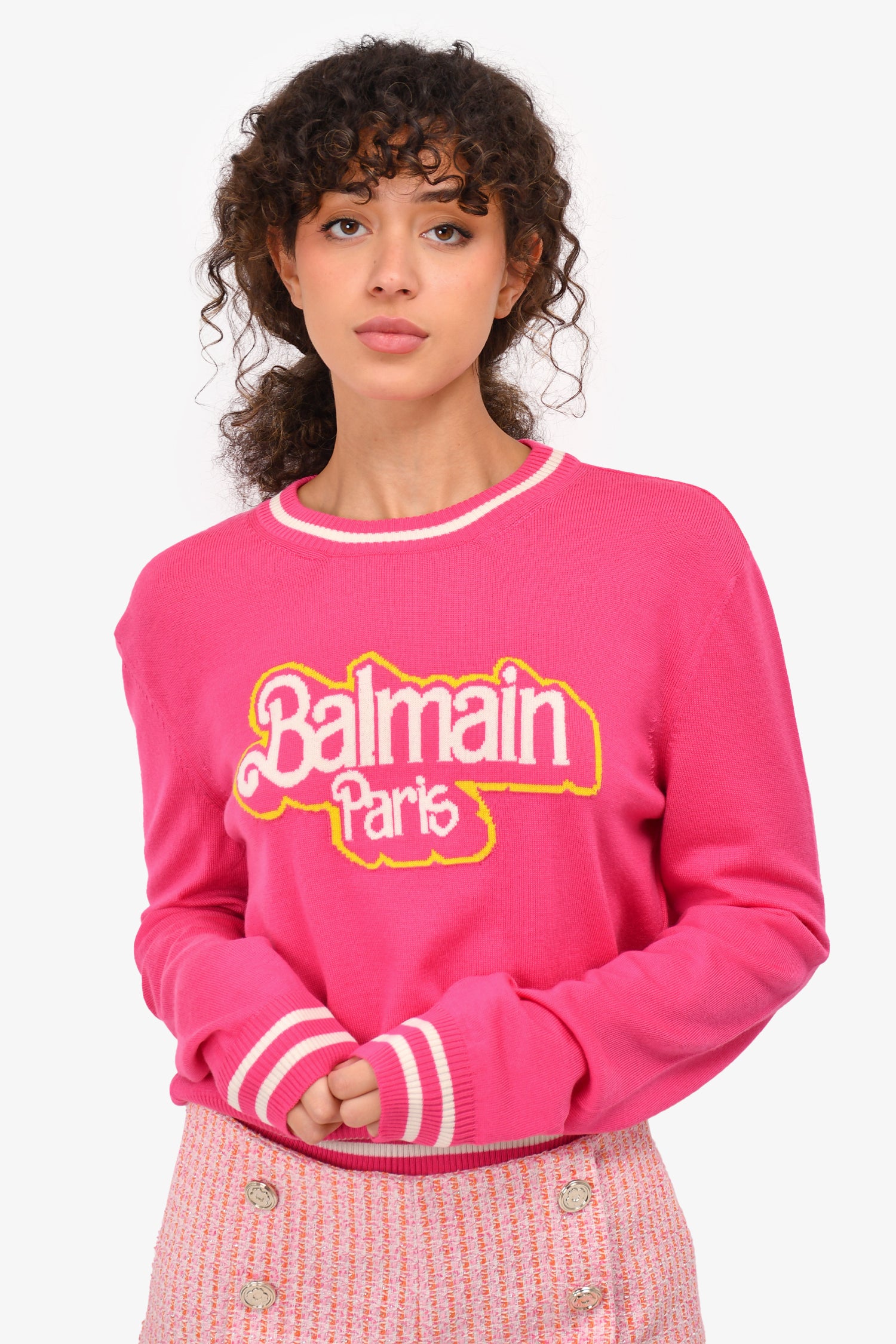 Balmain x Barbie Pink Virgin Wool Logo Sweater Size 40