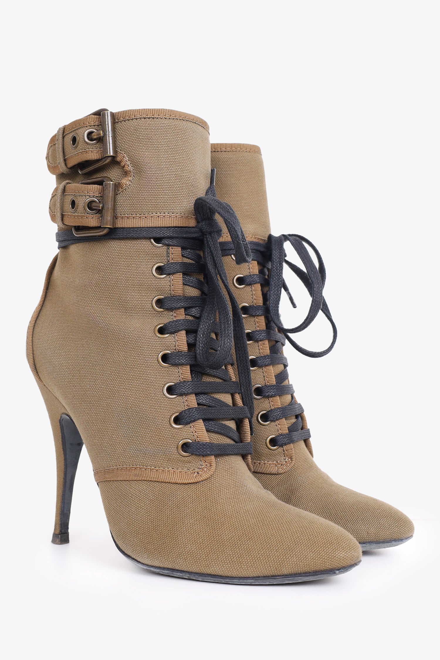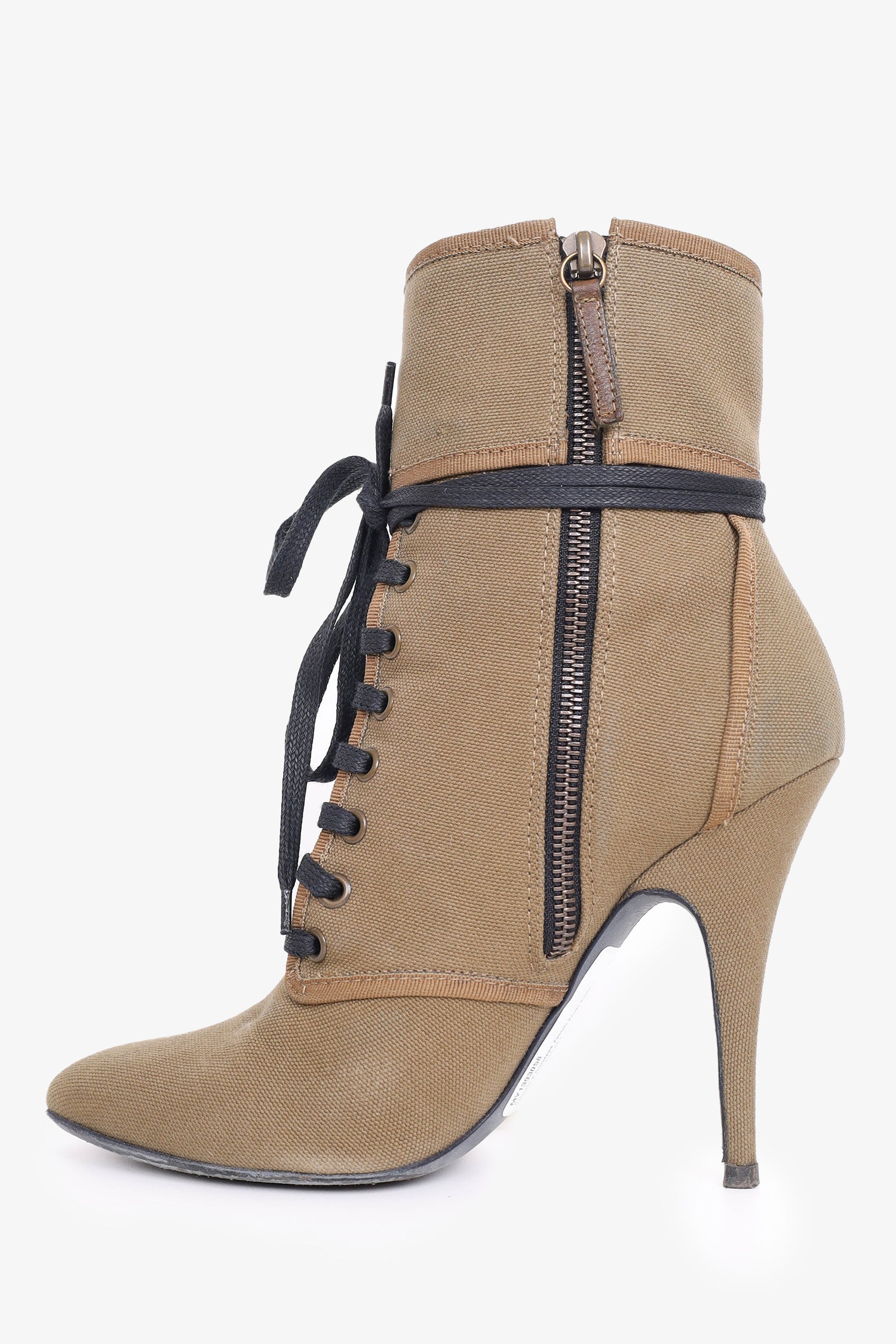 Balmain x Giuseppe Zanotti Khaki Ankle Military Boots Size 38.5