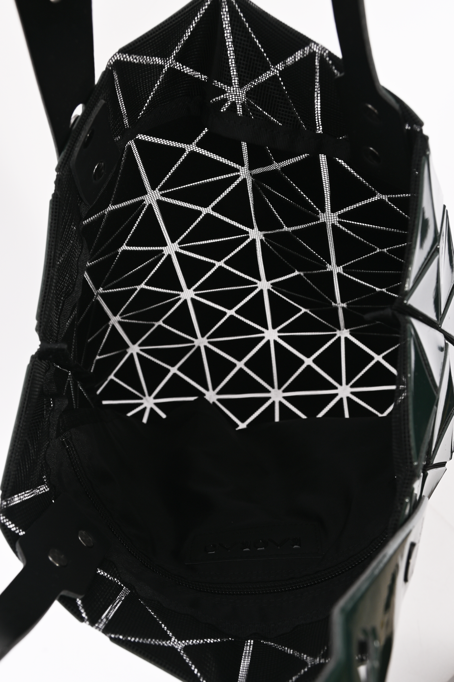 Refresh availabilityBao Bao Issey Miyake Green Prism Tote. Black textile interior lining. Open interior. Interior wall flap with zip pocket. Glossy outer. Silver-tone hardware. Tonal stitching.