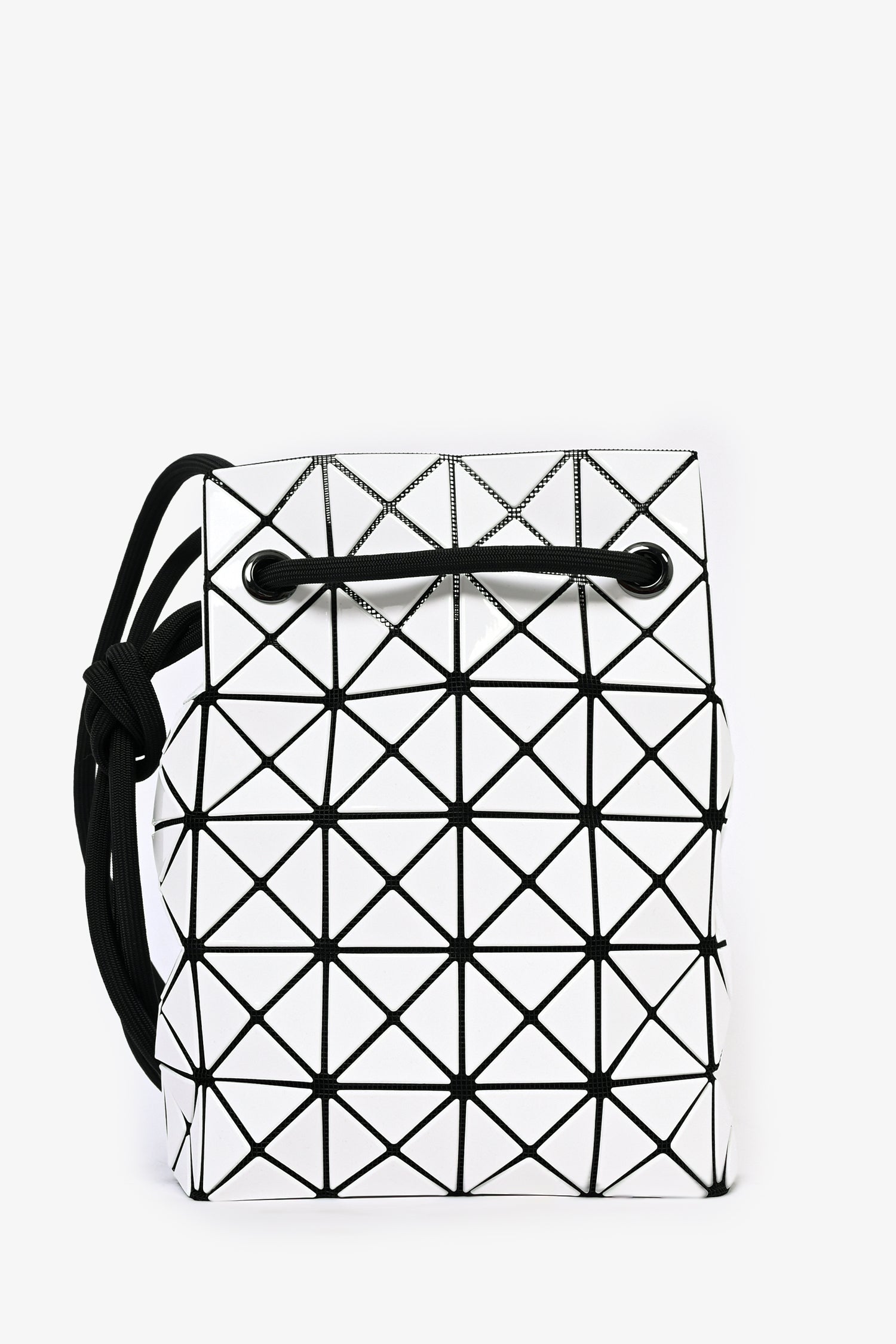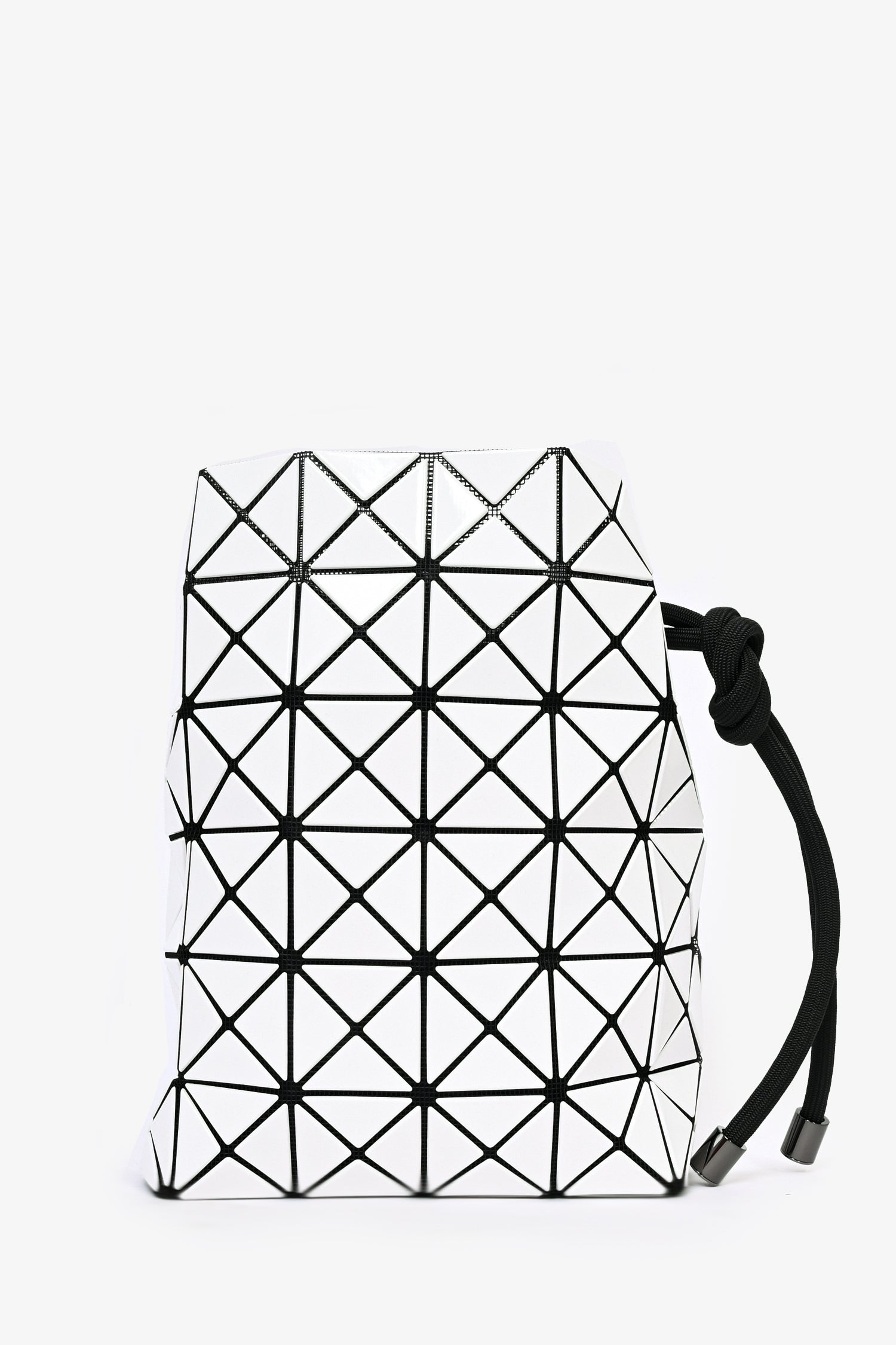 Refresh availabilityBao Bao Issey Miyake White/Black 'Wring' Bag. White triangular accents throughout. Mesh fabrication. Drawstring closure. Lined interior with pocket.