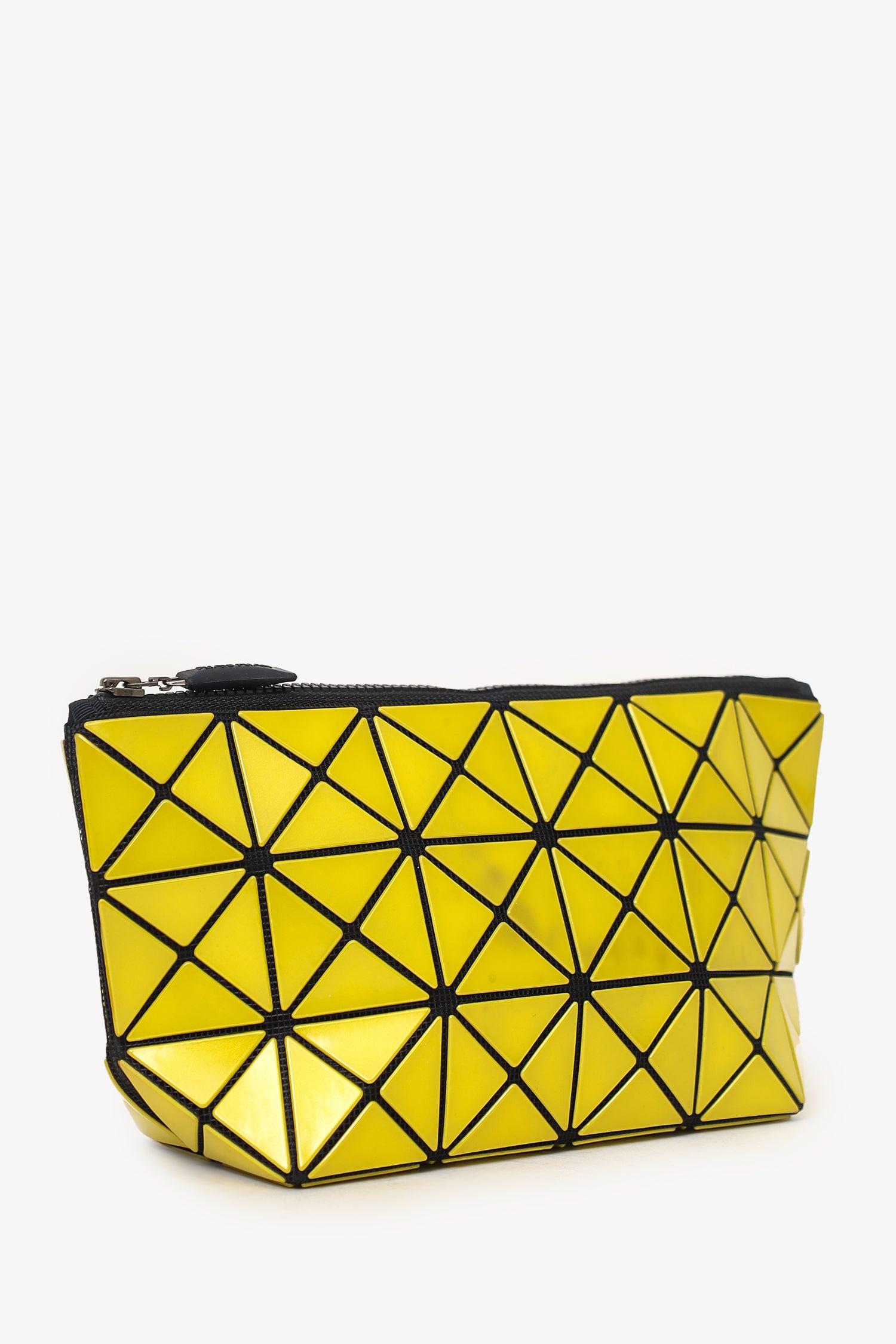 Refresh availabilityBao Bao Issey Miyake Yellow Geometric Pouch. Top zip closure. Lined interior. Silver-tone hardware. Tonal stitching.