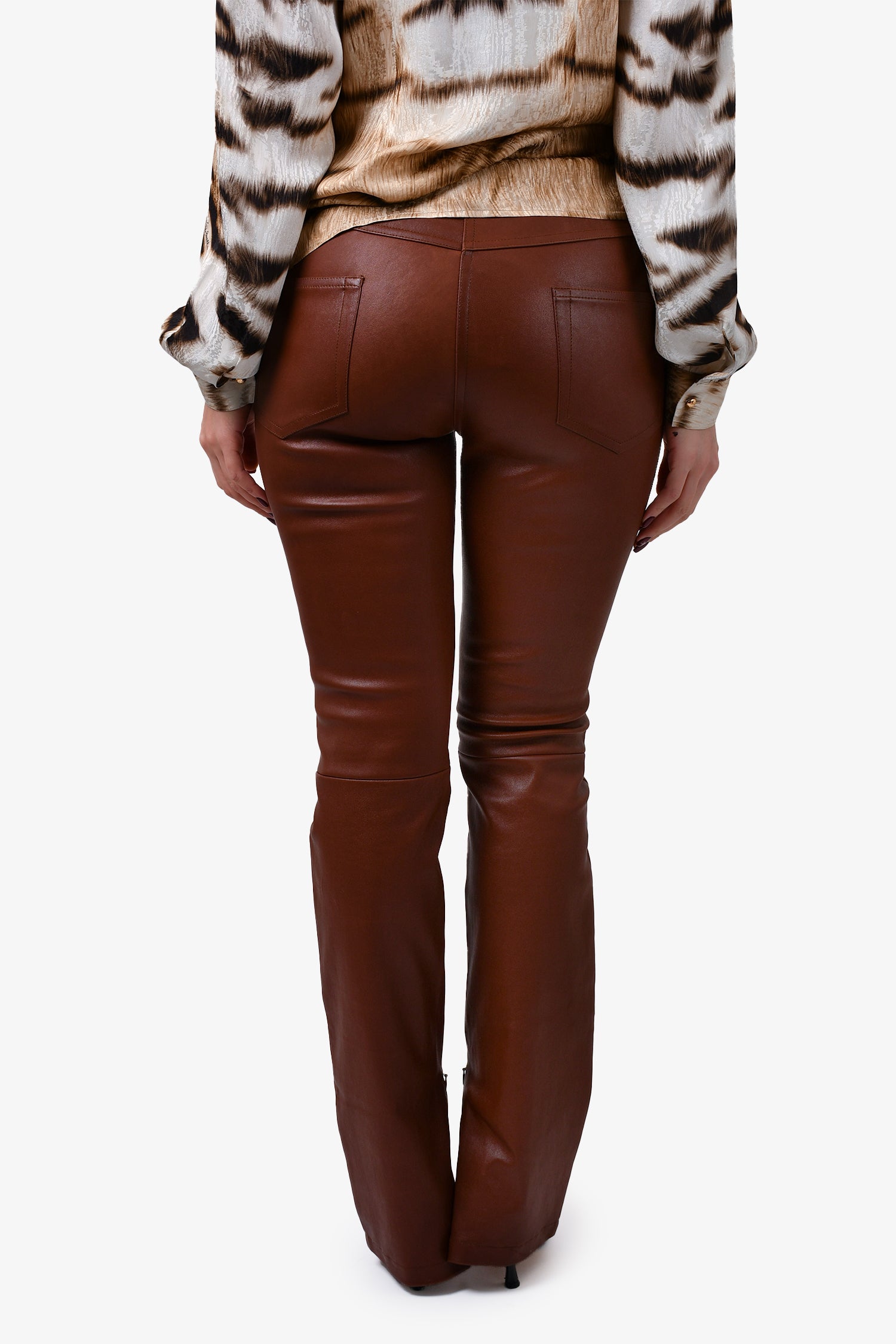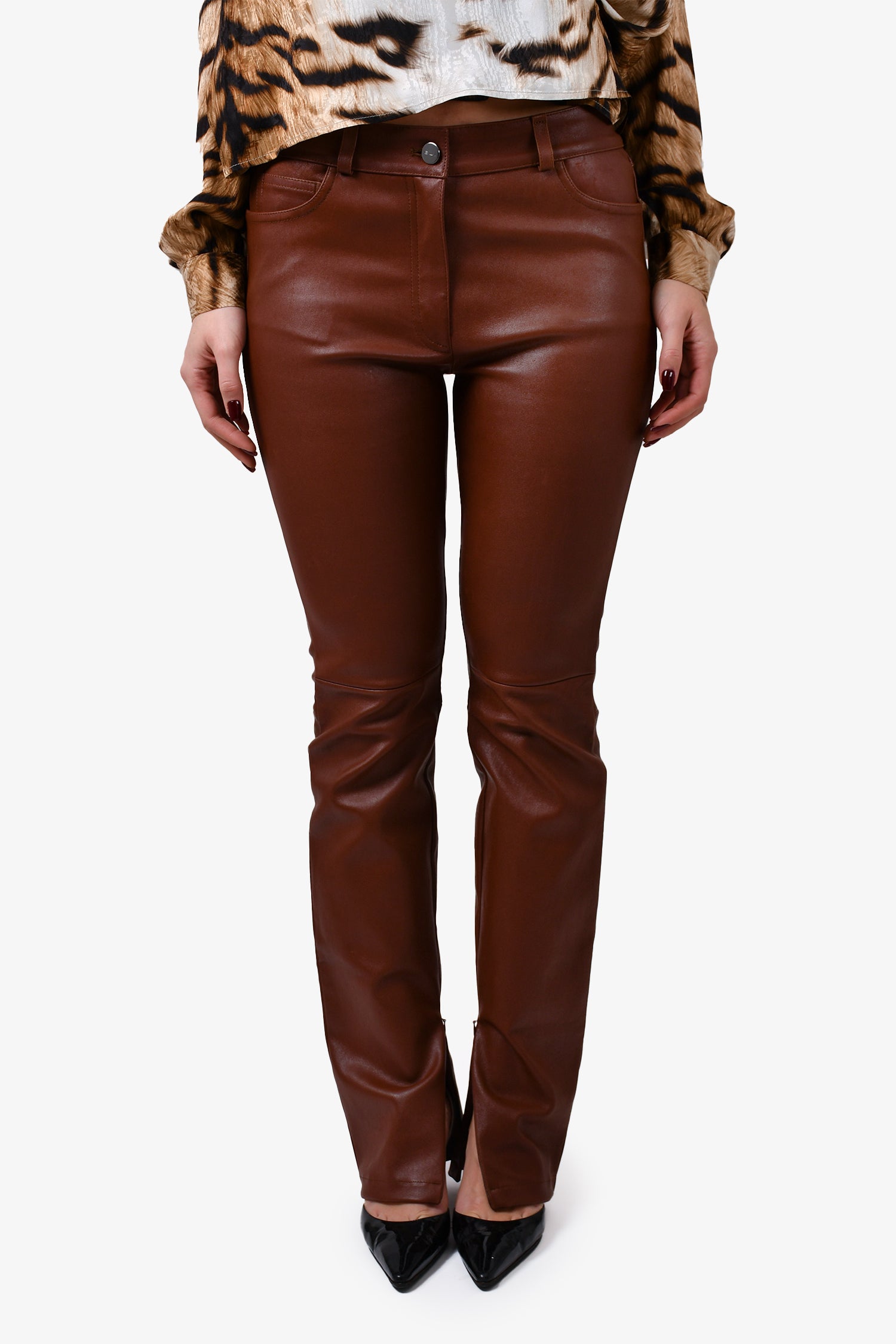 Refresh availabilityBarbara Bui Brown Lamb Leather Pants. Front zip and button closure. Front and rear pockets. Waist belt loops. Lined. Tonal stitching.