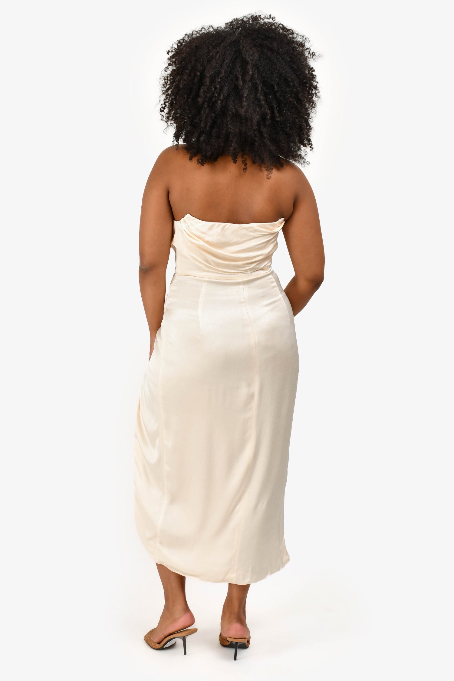 Bardot Eggshell Satin 'Elio' Midi Dress Midi Dress Size 8
