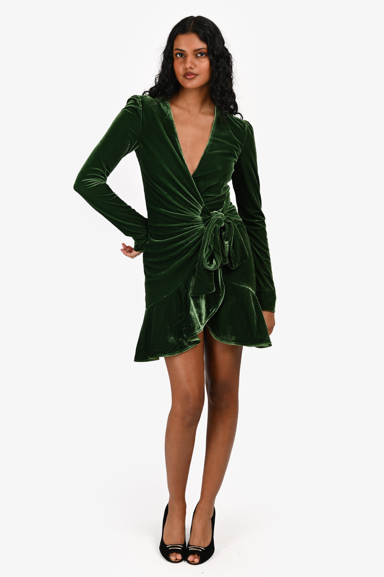 Bardot Green Velvet 'Kala' Wrap Mini Dress Size XS