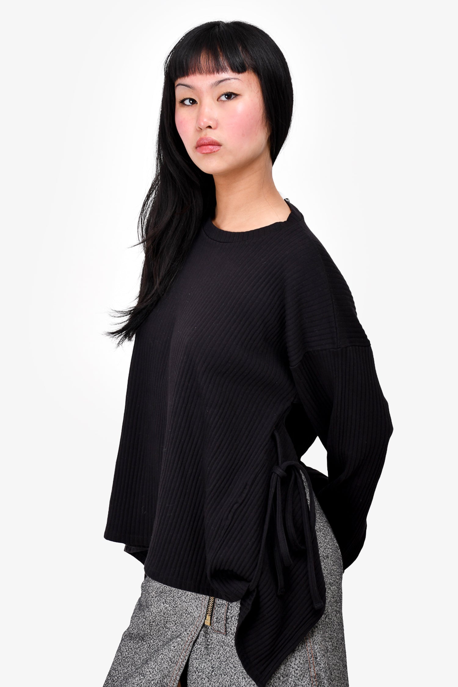 Refresh availabilityBaserange Black Ribbed Back Tie Top. Round neck. Pull-on.