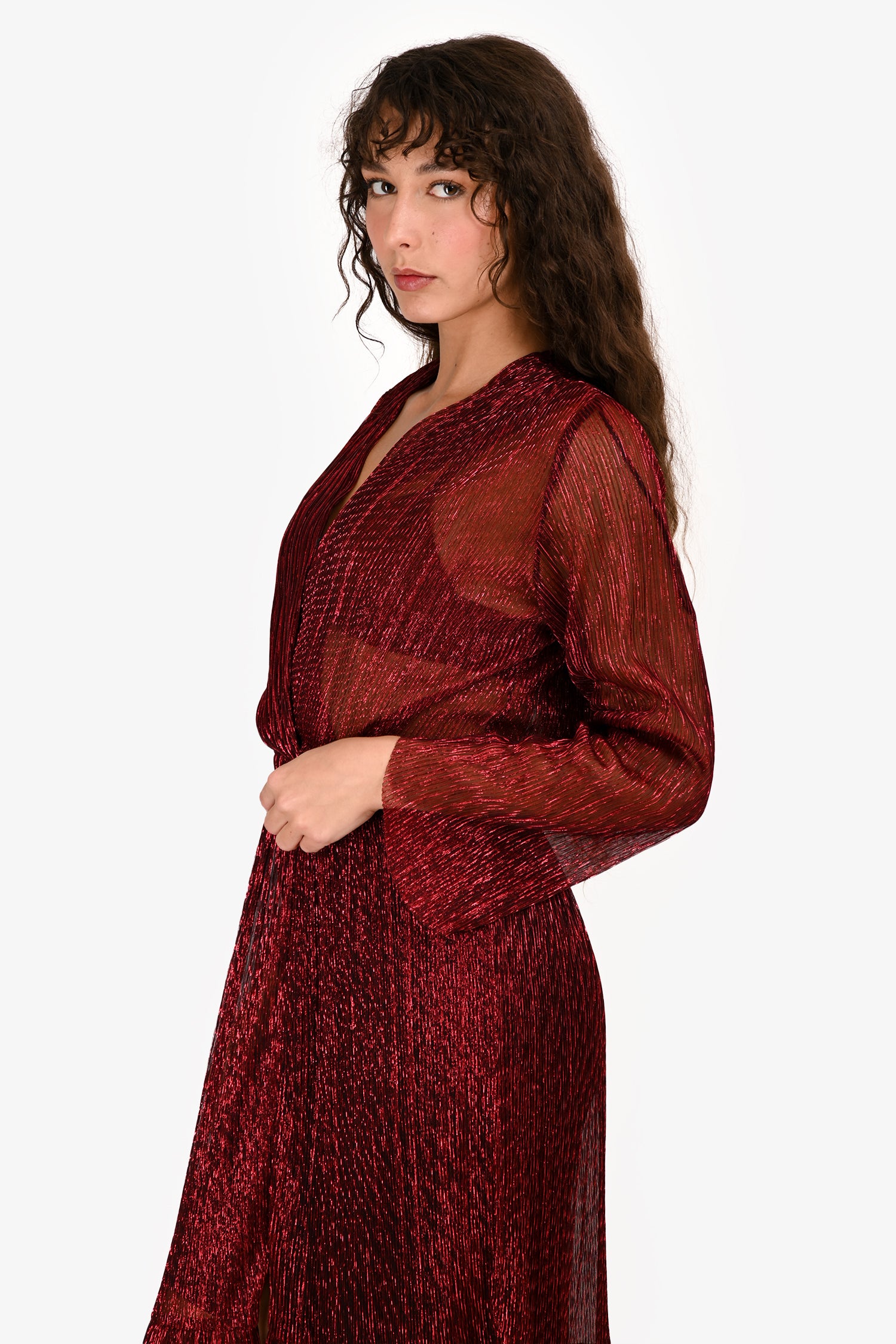 Ba&sh Red Metallic Long Sleeve Maxi 'Jolie' Dress Size 0