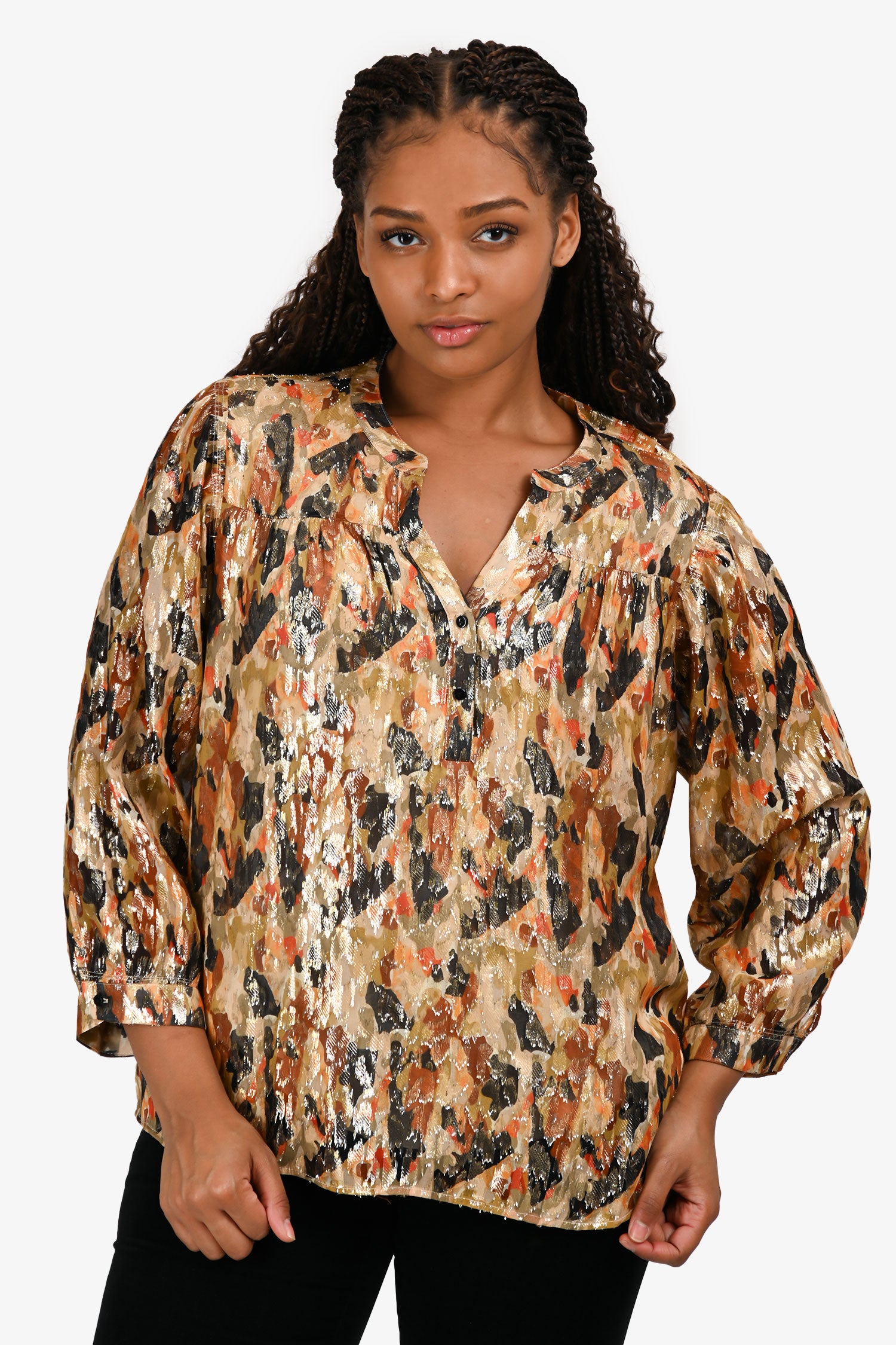 Refresh availabilityBa&sh Yellow Silk Gaby Blouse. Slip-on. V-neckline with button-up closure. Cuffs with button-up closure. Lined bodice. Tonal stitching.