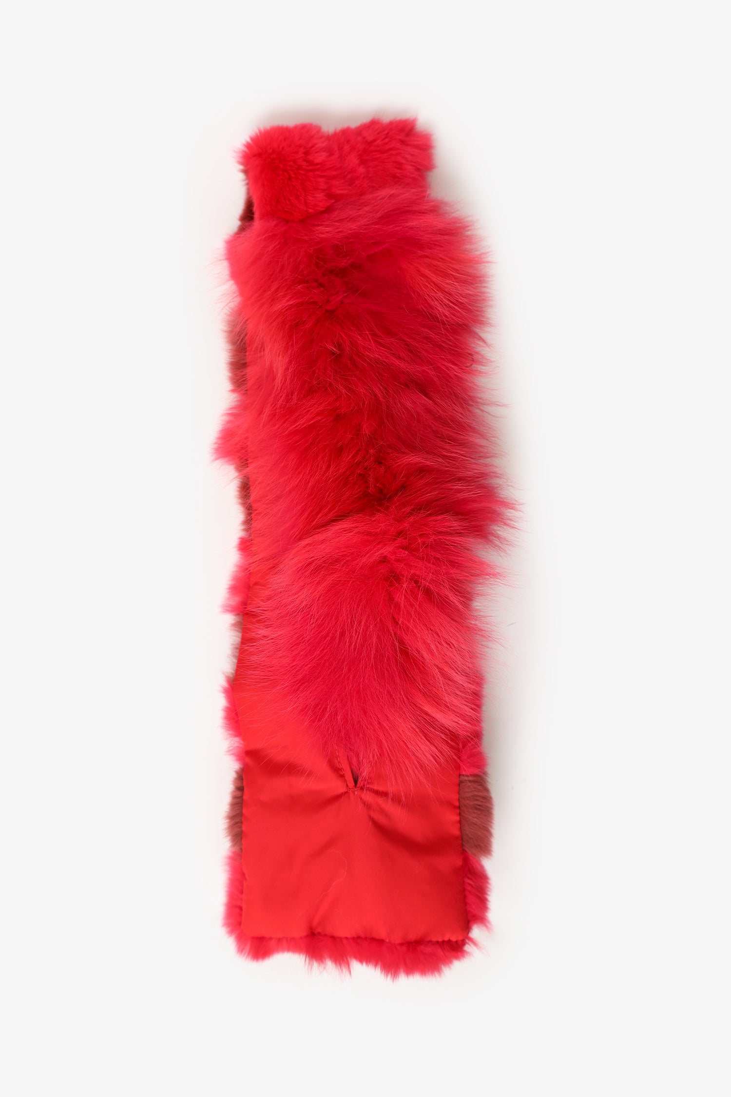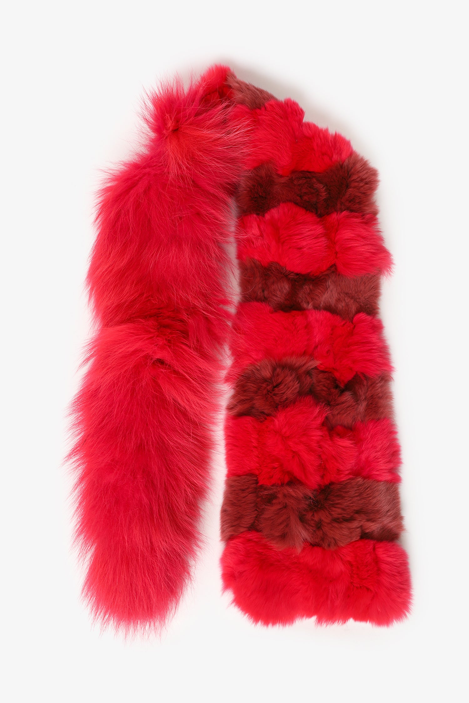 Beymen Pink/Red Fox Fur/Rabbit Scarf