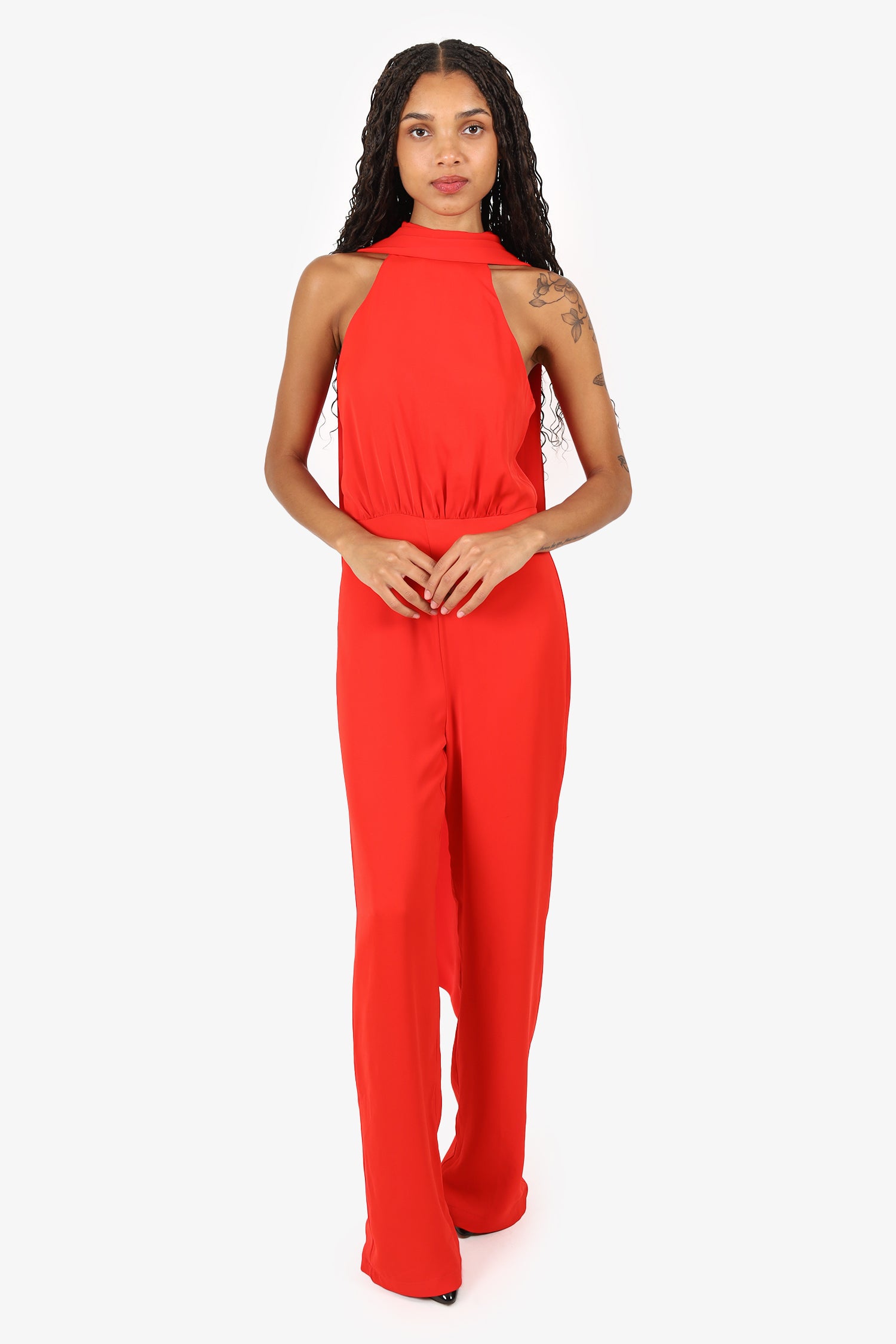 Refresh availabilityBianca and Bridgett Red Sleeveless 'Scarlet' Jumpsuit. Slip-on. Halter neckline. Rear zip closure. Lined interior. Tonal stitching.